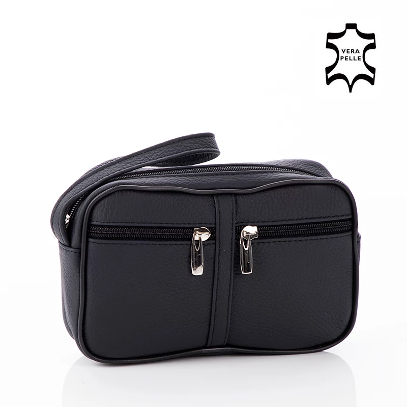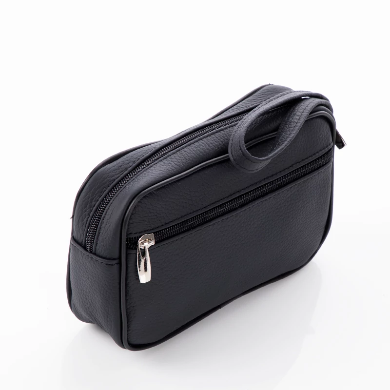 Ez a fekete színű autóstáska 4 zsebes, cipzáras. Valódi bőrből készült.