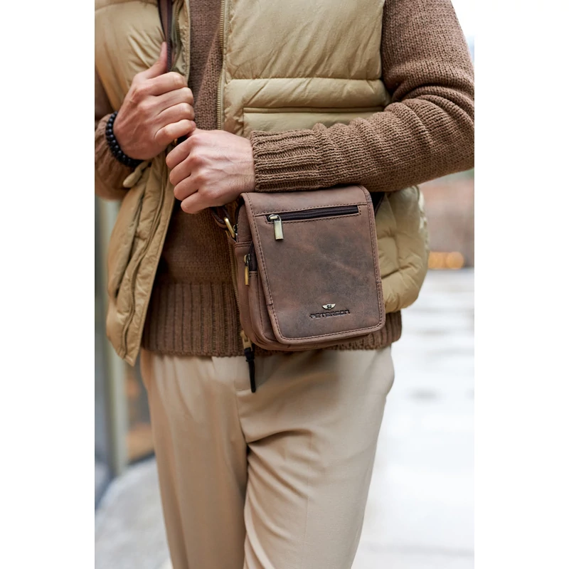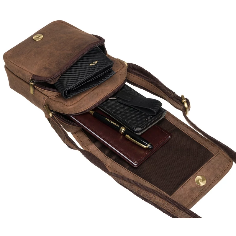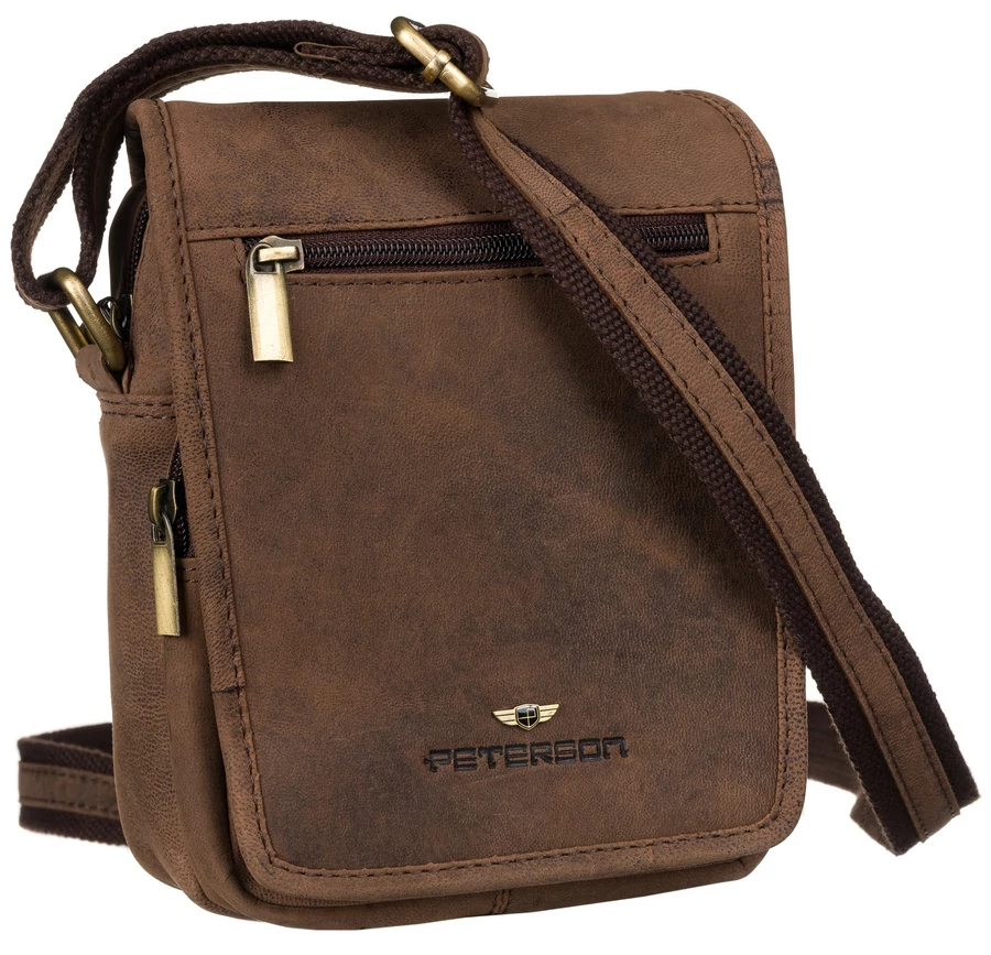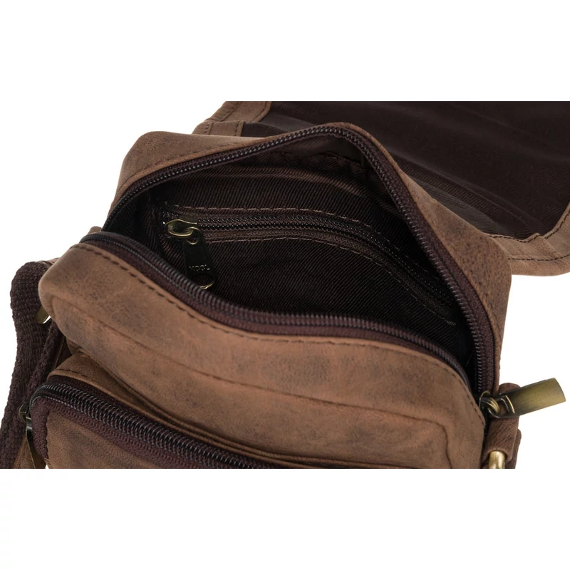 • Kiváló minőségű természetes nubuk bőrből készült tágas férfi futártáska. Egykamrás, tartós béléssel. A modell füllel és mágneses klipszel záródik. Belül sok szükséges cipzárral záródó zseb található. Táska állítható pánttal.