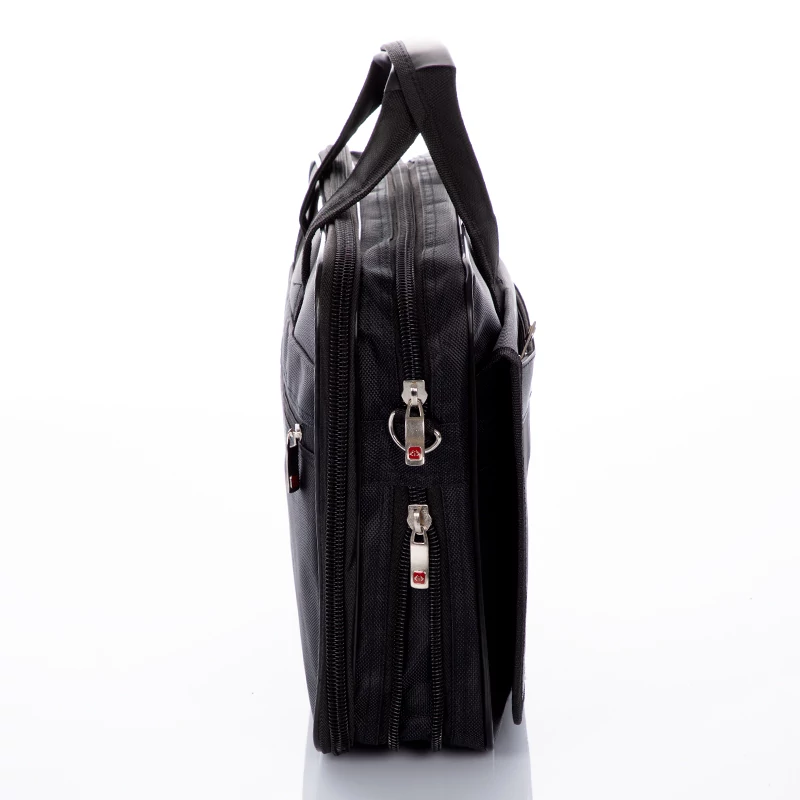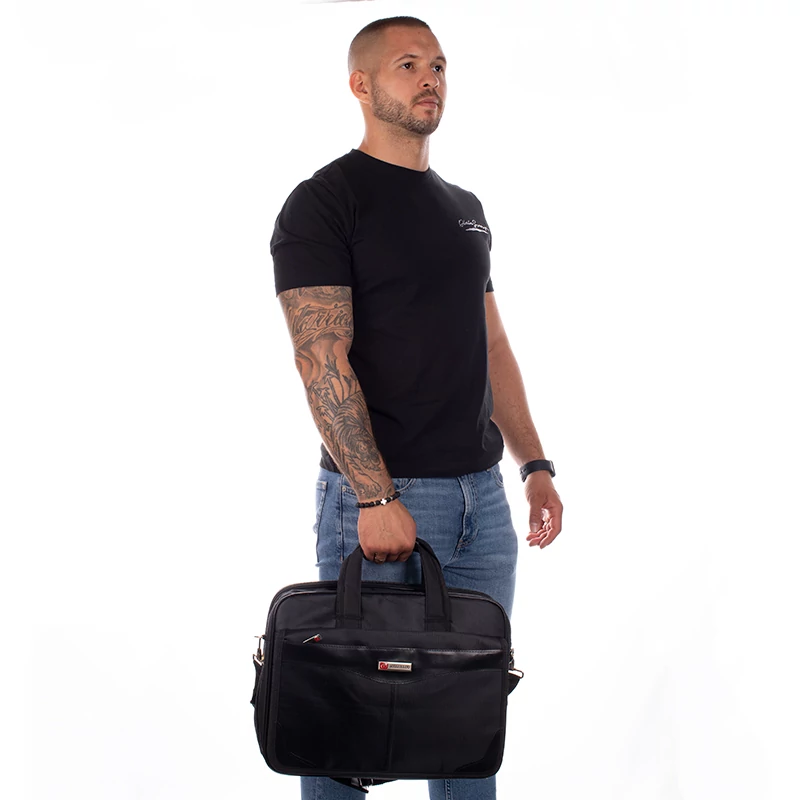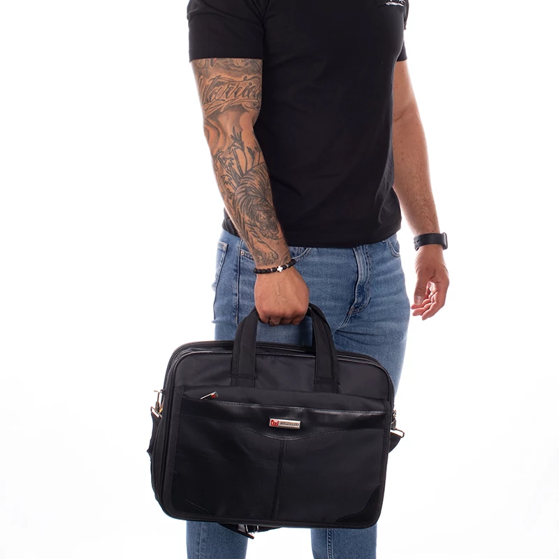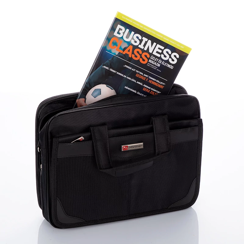 Ez a fekete üzleti táska, vászon anyagból készült.