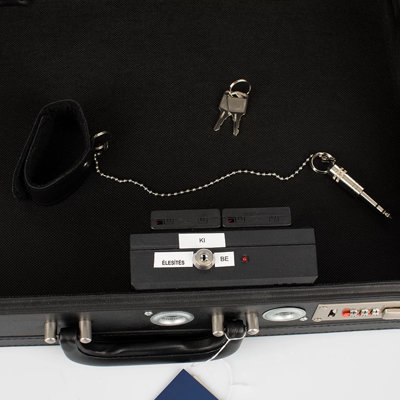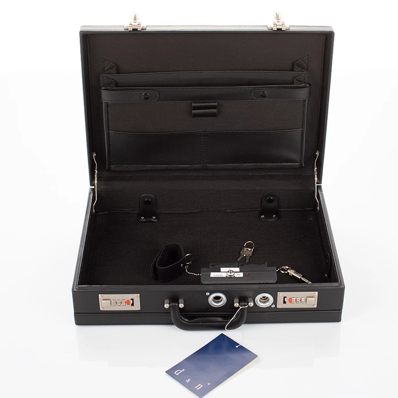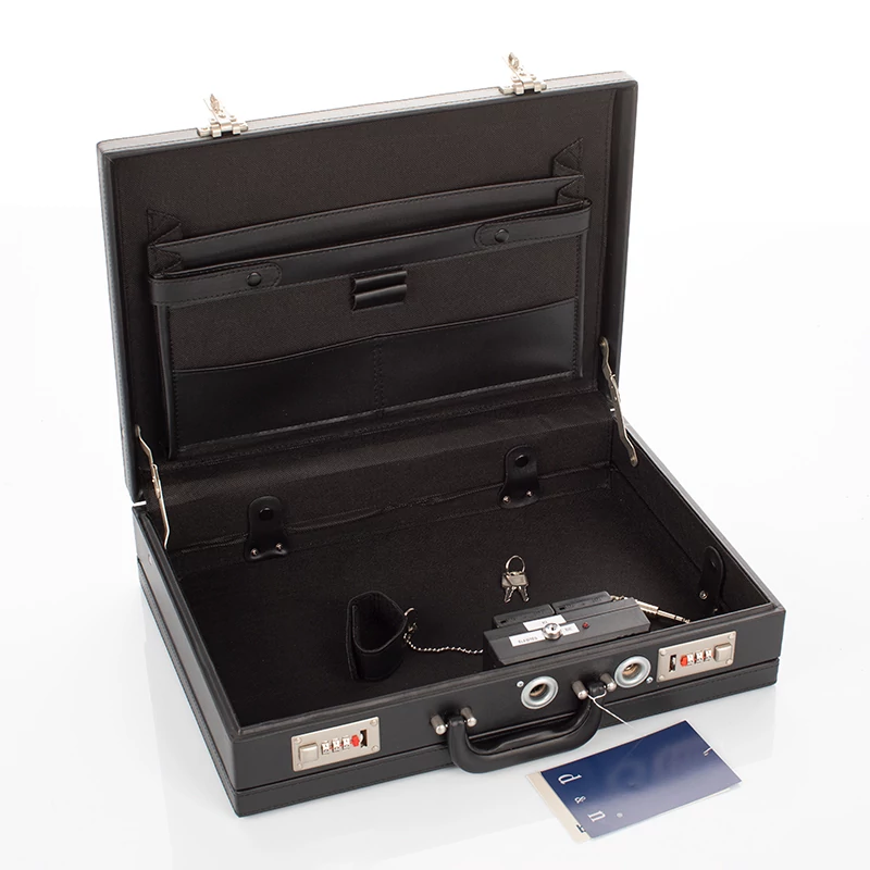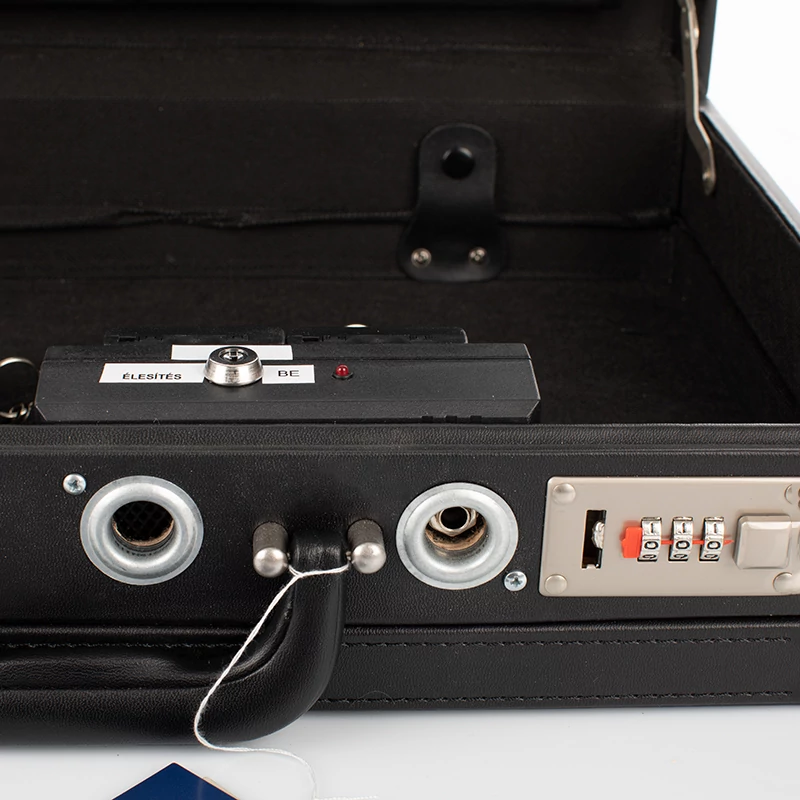Jack-dugós biztonsági csuklópántos húzókapcsolóval ellátott, 9V-os alkáli elemmel működő diplomatatáska. Aktiválás után (belső kapcsoló) a pánt eltávolításával egyidejűleg hangos, visító hangot ad ki a táska, egészen addig, amíg a csuklópánt jack-dugóját vissza nem tesszük a helyére, vagy kinyitva a kettős számzárat, a táska belsejében ki nem kapcsoljuk a belső kapcsolót.