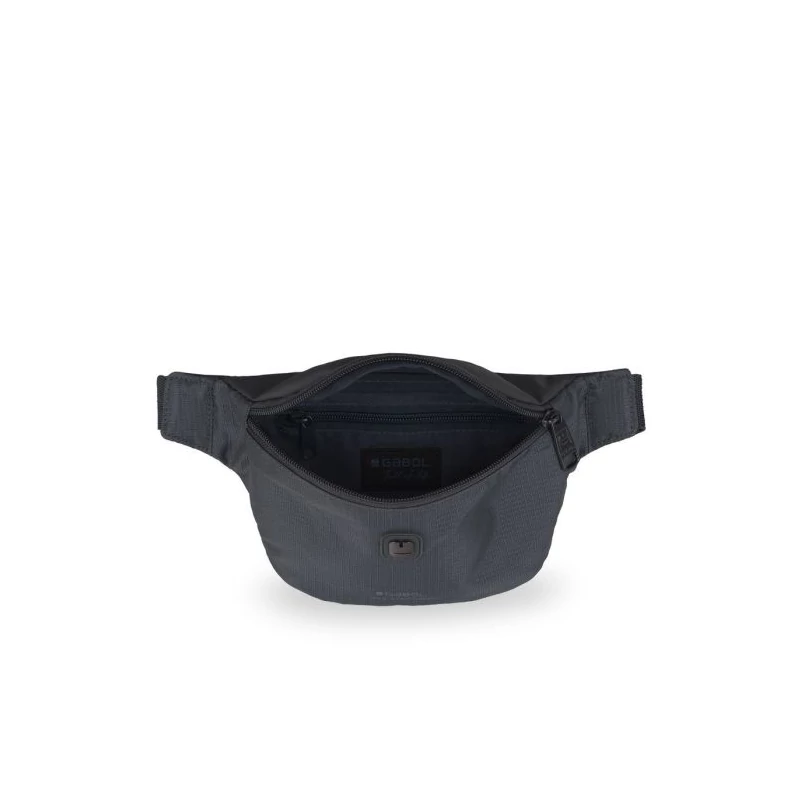 Gabol Exit övtáska. Megjelenésében kényelmet és igényességet tükröz. Egy fő- és egy mellékrekesszel van ellátva, a főrekeszben található egy cipzáras zseb is a kisebb tárgyak elhelyezésére. Derékbőséghez állítható és gyorscsattal nyitható, zárható. Az övtáska enyhén cseppálló.