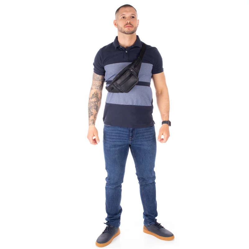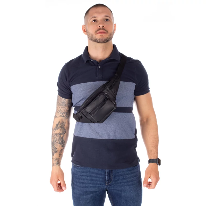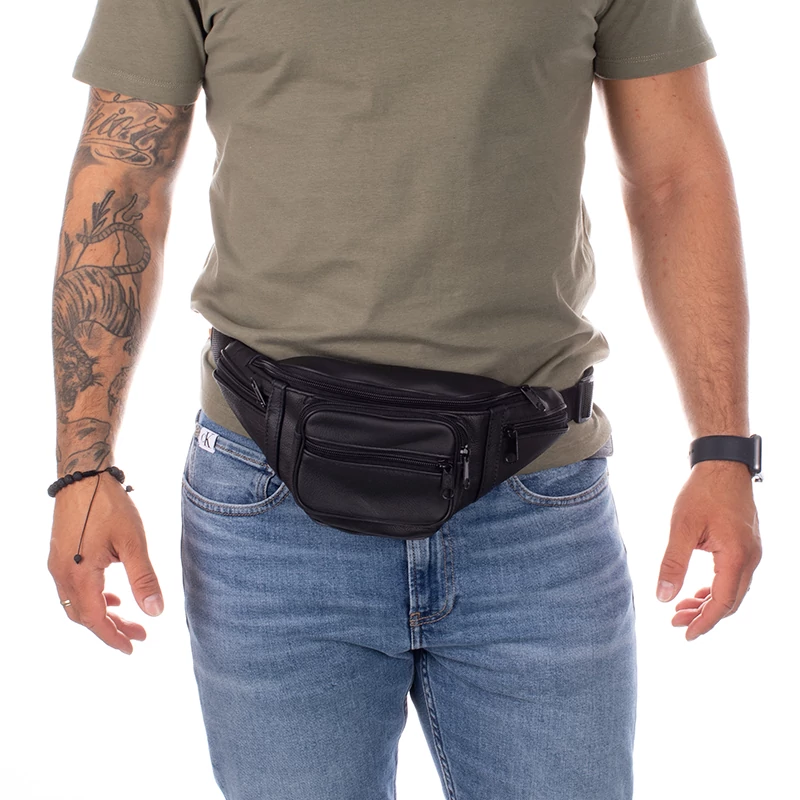 Sok zsebes, valódi marhabőrből készült övtáska. Klasszikus fazonú, mérete elegendő a legszükségesebb személyes dolgainknak: pénztárca, mobiltelefon, kulcsok, iratok stb. Pántja erős, méretre állítható. Kényelmes viselet és nem utolsó sorban nagyon praktikus is.