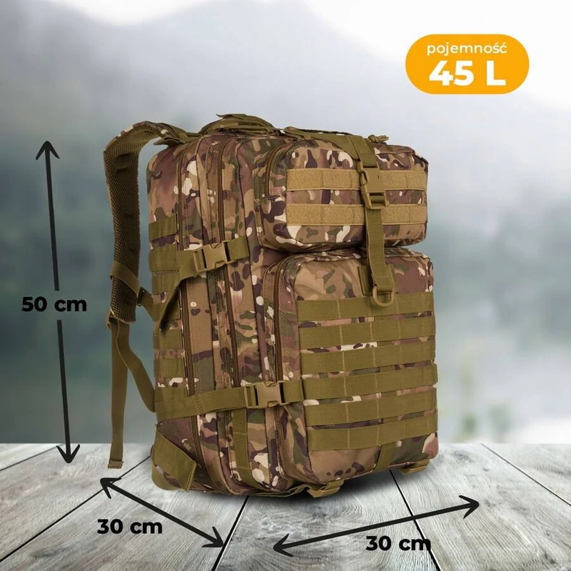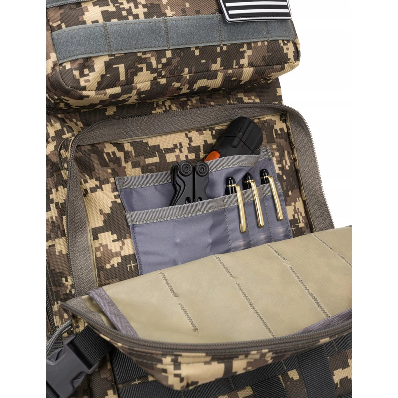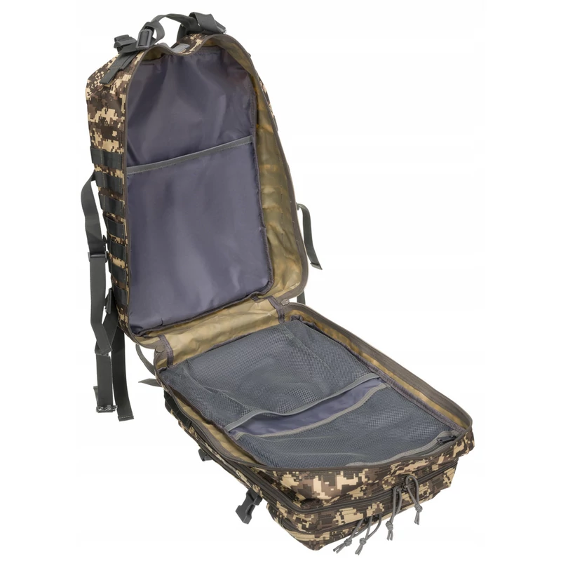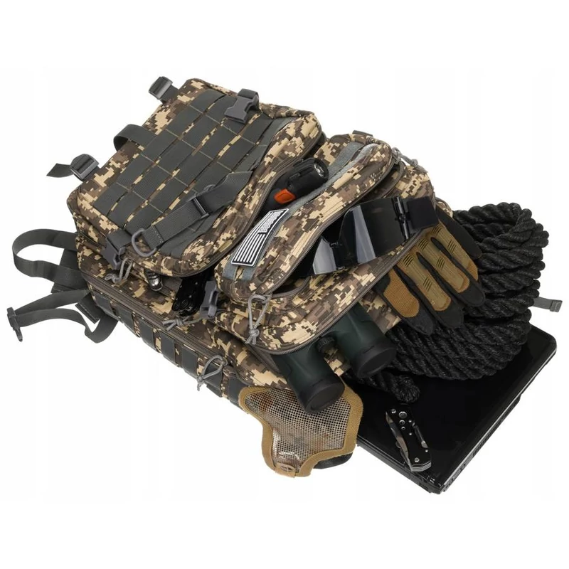 Taktikai hátizsák, amely minden körülmények között működik. Tökéletes kapacitás mindennapi használatra és több napos kirándulásokhoz. Katonai stílus és funkcionalitás - elkötelezett az aktív időtöltés, a katonai, a hegyi túrázás, a vadászat, az extrém sportok és a mindennapi használat szerelmeseinek.
