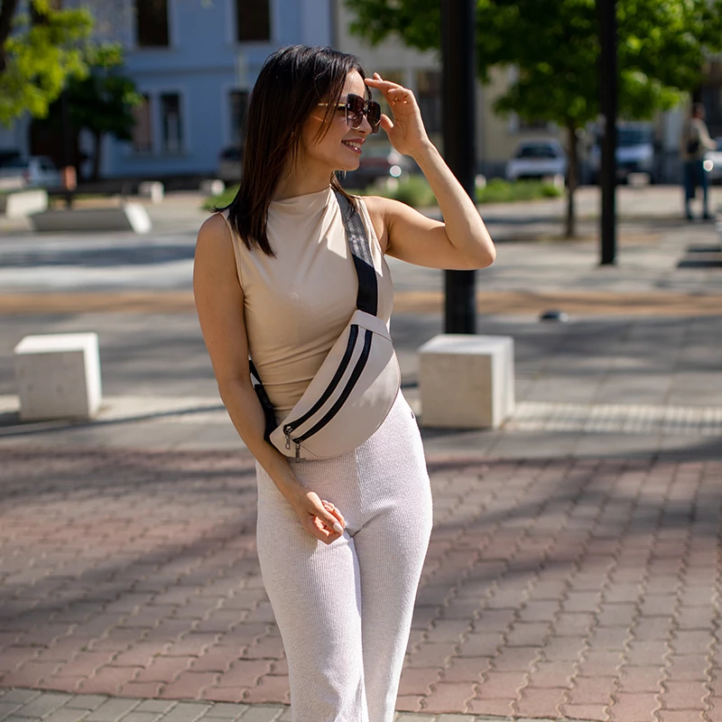 Keresztpántos női oldaltáska dupla cipzáros