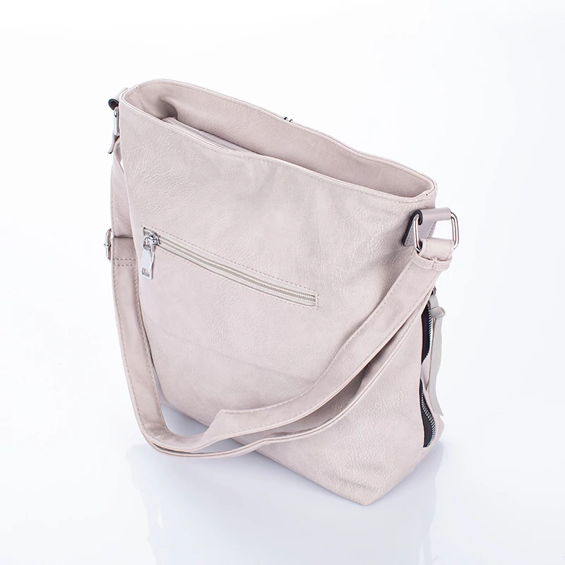 Sokzsebes női oldaltáska szürke színben.
