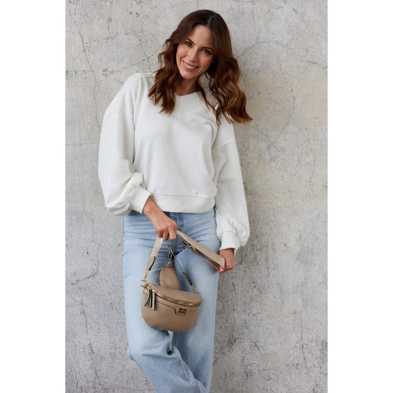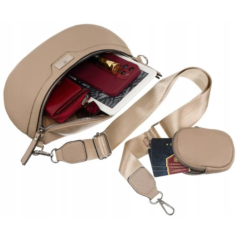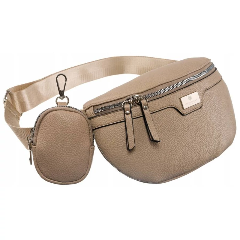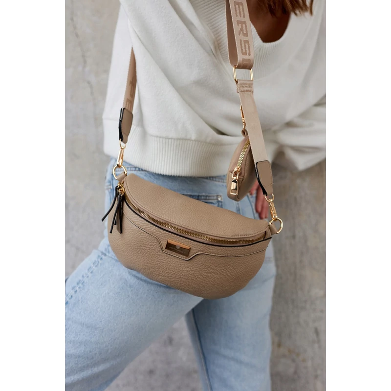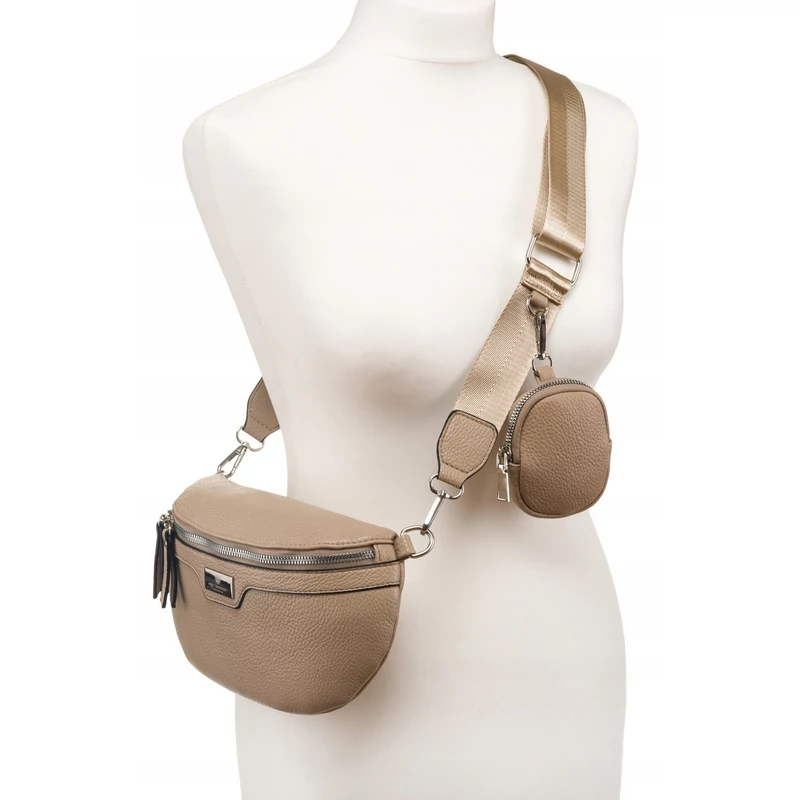 Elegáns Női Övtáska/Oldaltáska + Praktikus kiegészítővel sötét bézs színben