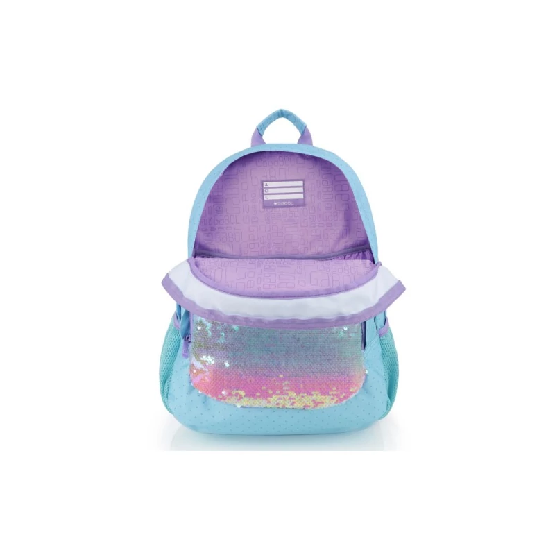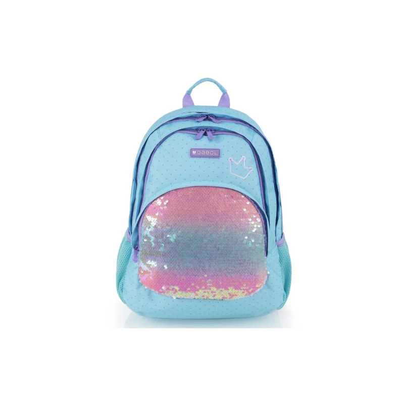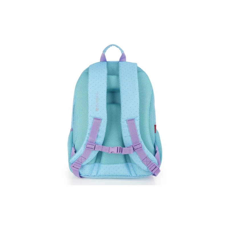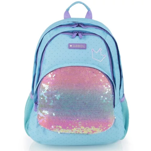 Gabol Fantasy hátizsák. Kézben, és állítható, szivacsos és légáteresztő vállpántjainak, valamint szintén szivacsos (ergonomikus) hátrészének köszönhetően háton egyaránt kényelmesen hordható. A hátizsák két fő-, két elülső mellék-, és két oldalsó rekesszel rendelkezik. Nagyobbik főrekeszében találjuk a névcímkét és egy mappák tárolására alkalmas zsebet, másik főrekeszében pedig egy kisebb zseb kapott helyet. A két elülső mellékrekesz remek hely egyéb iskolai dolgaink, valamint személyes tárgyaink tárolására. Két oldalsó rekesze, a gumírozott zsebeknek köszönhetően lehetőséget kínálnak egy-egy kisebb palack tárolására.