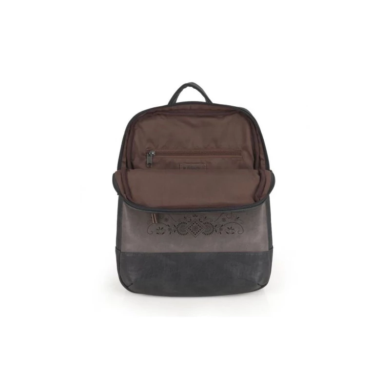 Gabol Emily női hátizsák. Elegáns, sajátos stílussal rendelkezik, a vállpántok hossza egyszerűen állítható. A hátizsák főrekeszében egy cipzáras zsebet találunk, elülső mellékrekesze is remek hely személyes tárgyaink tárolására.