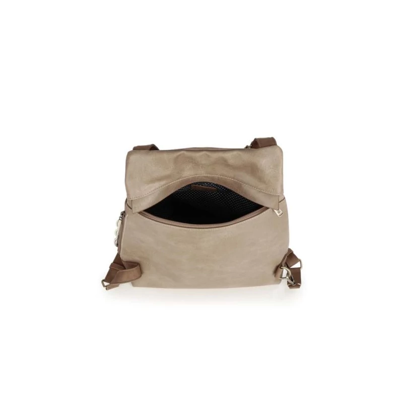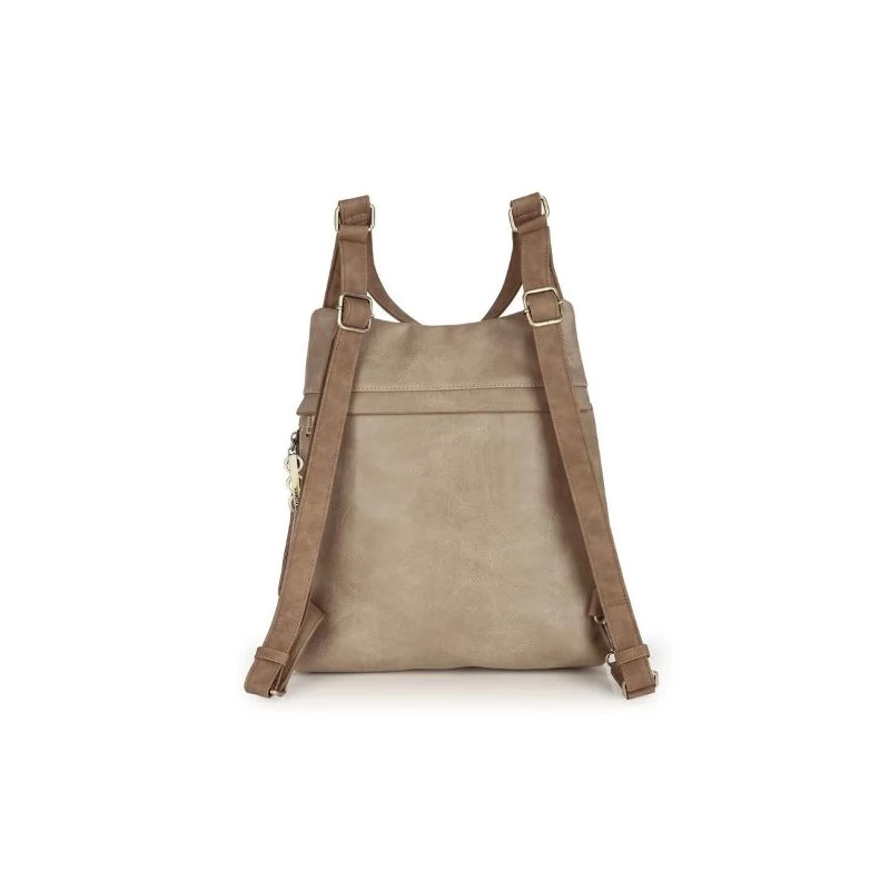 Megjelenése természetességet és egyedi stílust tükröz. Egy fő- és két mellékrekesszel bír, a vállpánt hossza egyszerűen állítható. A táska főrekeszében egy cipzározható rekesz, valamint további 2 nyitott zseb kapott helyet. Az elöl és oldalt elhelyezkedő mellékrekesz is cipzárral zárható, remek helyet biztosítanak személyes tárgyaink tárolására. A hátizsák hátsó oldalán található rejtett cipzáras főrekesz biztonságosabbá teszi a terméket, valamint biztonsági funkciót tölt be a táska pántjának SAFE feliratú végén található karabinerje is, amit például bevásárlókocsihoz, vagy akár az étteremben a székhez tudunk rögzíteni.
