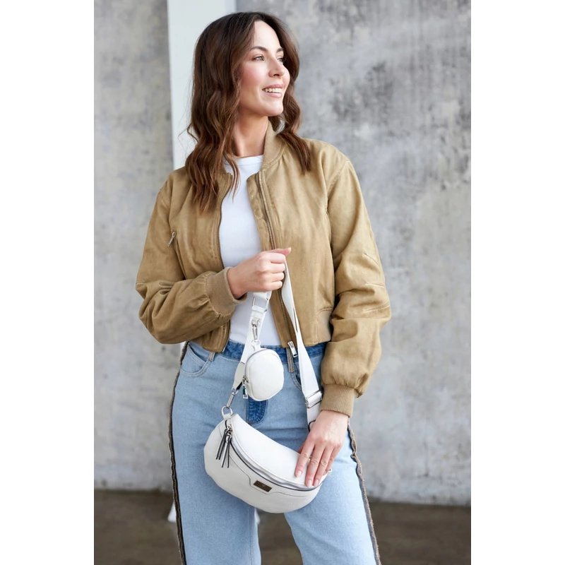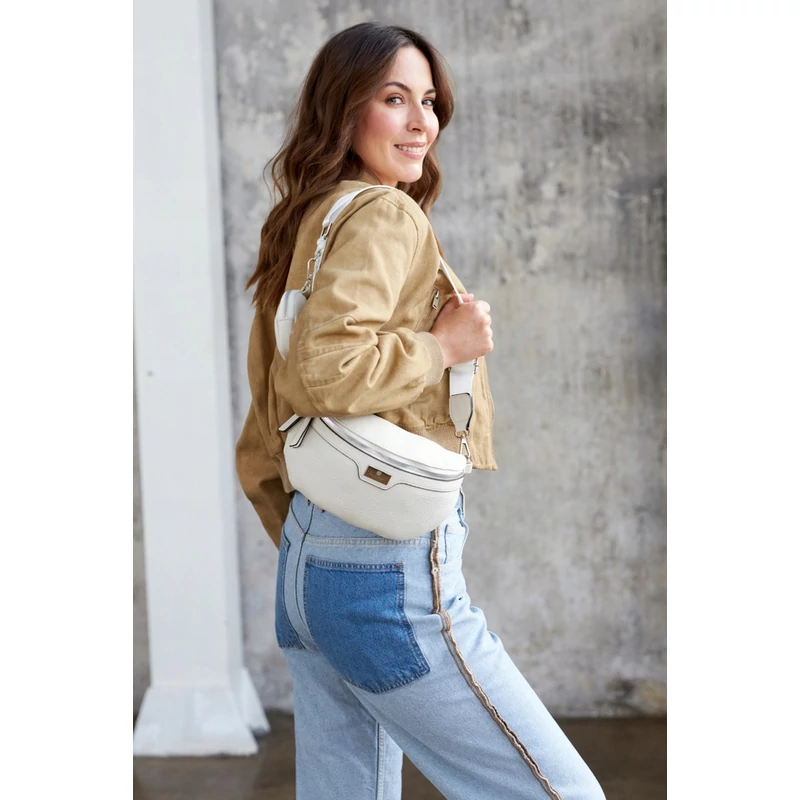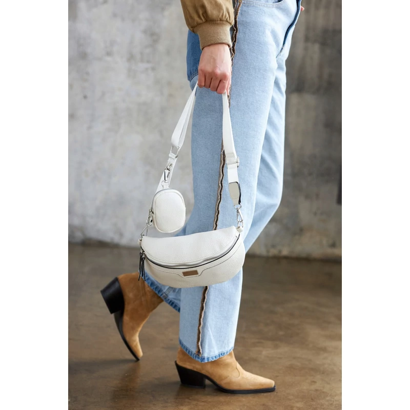 Elegáns Női Övtáska/Oldaltáska + Praktikus kiegészítővel fehér színben
