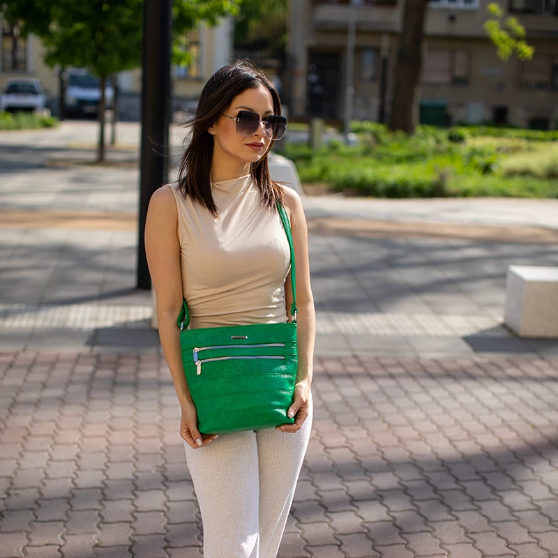 Ez a Silvia Rosa női oldaltáska tökéletes a hétköznapokra, vagy akár különleges eseményekre is. A női táska mérete 25x25 cm és egy nagy belső tere van. Ezen belül pedig található több kisebb zseb. 2 darab telefontartós, és 2 darab cipzáras zseb. A táska különlegessége, hogy elől található vízszintesen, kettő díszes cipzár, ami egyedivé teszi ezt válltáskát. Plusz az oldaltáska nagyon különleges gyöngyház fényű, emiatt pedig gyönyörű látványt mutat napfényben! A táska hátulján még található egy titkos zseb is, ahova a legfontosabbakat tehetjük: iratok, kulcsok és telefon. A vállpántja könnyen állítható, így akár a testen teljesen átvetve is hordható, ez az akciós Silvia R. táska.  Ez a fazon összesen 5 gyönyörű színben kapható: fekete, bronz, bézs, rózsaszín és rosegold, vagy más néven rózsaarany.