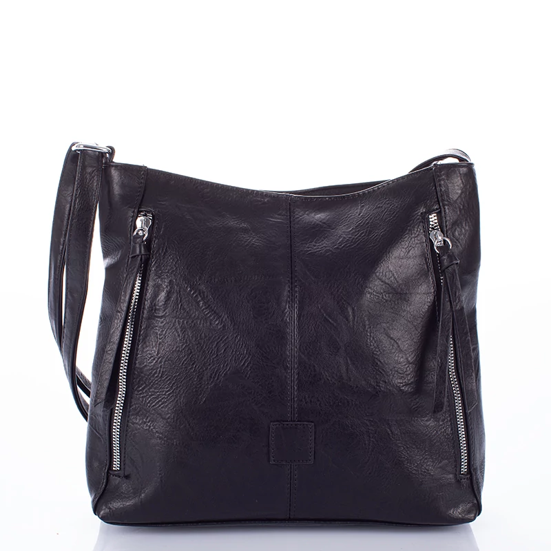 A táska egy nagy részből áll melynek belseje osztott elrendezésű. Található a belsejében 2db kisebb mobiltartó illetve 2db cipzáras zseb. A táska mindkét oldalán található 1-1db cipzáras zseb illetve a hátoldalán is kialakítottunk 1db cipzáras zsebet.