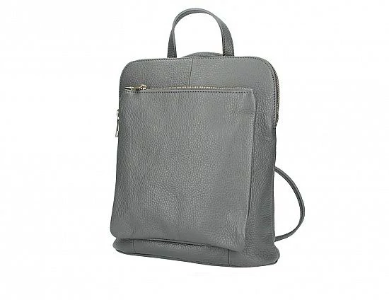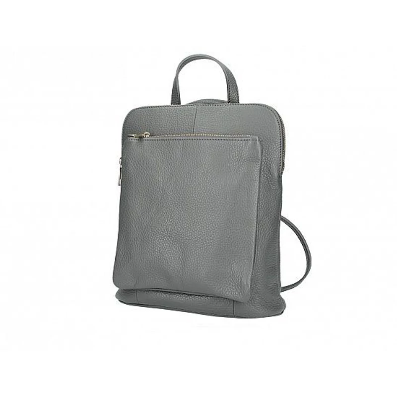 Csinos közepes méretű valódi bőr női hátizsák. 3 funkciós: hordható kézben a kis fülével, hordható keresztül véve vállunkon oldaltáskaként és hordható hátizsákként is. Igényesen, szépen megmunkált, olasz táska. Kívül két cipzáros zsebe is van. Belseje osztott elrendezésű, összesen öt zseb van belül.