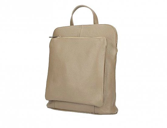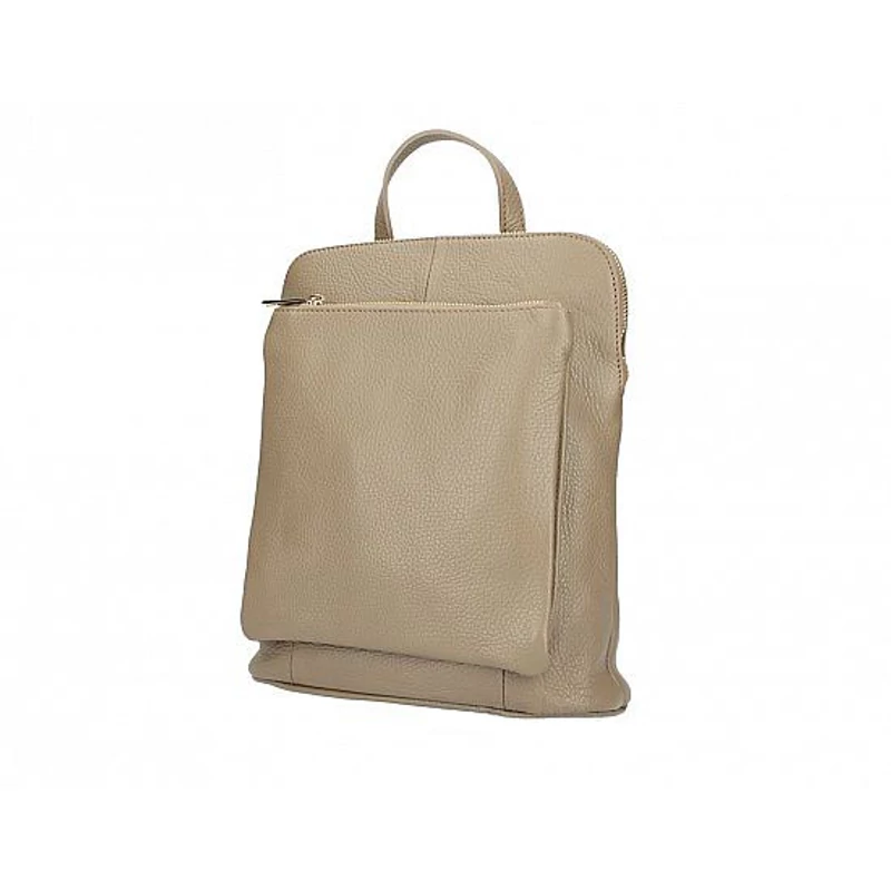 Csinos közepes méretű valódi bőr női hátizsák. 3 funkciós: hordható kézben a kis fülével, hordható keresztül véve vállunkon oldaltáskaként és hordható hátizsákként is. Igényesen, szépen megmunkált, olasz táska. Kívül két cipzáros zsebe is van. Belseje osztott elrendezésű, összesen öt zseb van belül.