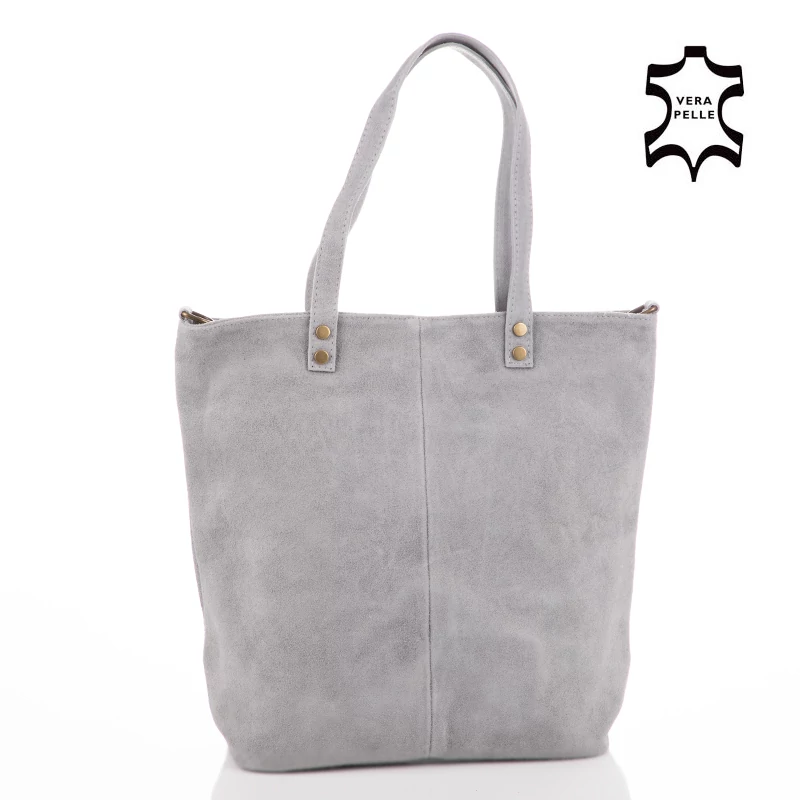 Valódi velúrbőrből készült női táska. Nagy pakolótere van, melyben egy cipzáras oldalsó zseb is helyet kapott, ahol például mobiltelefonunkat tárolhatjuk. Kétféle hosszúságú pántja van: kisebbik dupla füle 60 cm hosszú, ez varrva is és szegecselve is van, masszív. Hosszabb pántja igény szerint csatolható fel a táskára. Ennek hossza állítható, maximum 130 cm-ig növelhetjük. A táska teteje biztonságosan cipzárral zárható.