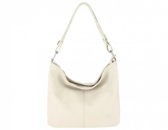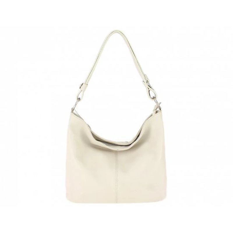 Valódi bőr női táska közepes méretben, bézs színben. Teteje cipzárral záródik. Belseje osztott elrendezésű, összesen 4 rekeszes. Egy külső cipzáras rekesz van a táska hátoldalán, melyet mindenki szeret. Pántja kétállásos, egyik hosszában 50 cm, de átállíthatjuk hosszúra is, ekkor 100 cm hosszúságú lesz. Szélessége 2,5 cm. Egyszerű, nagyszerű és praktikus női bőr táska a mindennapokra.