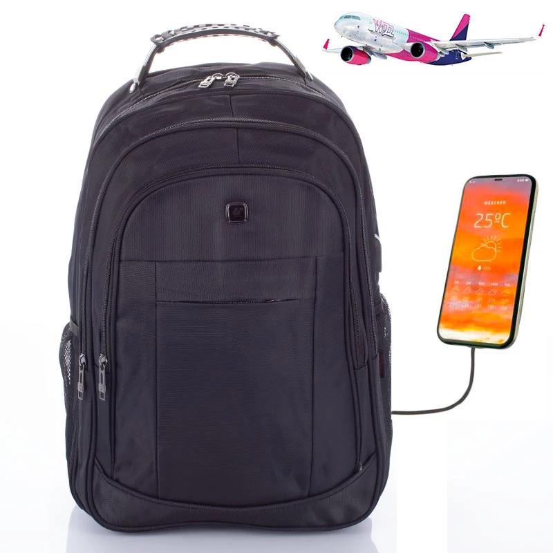 Wizz Air méretű laptophátizsák, mely rendkívül praktikus utazáshoz, iskolába vagy munkába járáshoz is! A sok oldalú hátizsák strapabíró, erős vászon anyagból készült, így jól bírja a mindennapok által okozott gyűrődést. A hátitáska sok zsebbel rendelkezik, ebből kifolyólag a tárolás és a rendszerezés nagyon egyszerű benne. Található a hátulján egy külön laptopttartó rekesz, így kényelmesen elkülönítve hordhatjuk magunkkal a laptopunkat, és bármikor könnyen elővehetjük azt. A táska különlegessége, hogy külön USB kivezetéssel rendelkezik. Így, ha tölteni szeretnénk a telefonunkat, akkor csak helyezzünk egy powerbanket a táskába, a kábelt vezessük ki a nyíláson keresztül, a telefonunkat pedig ugyanúgy használni tudjuk. Rendkívül praktikus lehet ez a megoldás városnézés esetén, vagy kiránduláskor. Repülős utazásra is magunkkal vihetjük az utazó hátizsákot, mivel 40 x 30 x 20 cm mérete miatt, tökéletesen belefér a Wizz Air ingyenes kézipoggyász szabályzatába. Az utazótáska összesen két színben kapható, feketében és szürkében. Ez a laptoptartós hátizsák egy igazi multifunkcionális darab, hiszen használhatjuk a mindennapokban, de ha utazásra kerülne a sor, akkor ott is remekül helyt áll. Ára pedig verhetetlen! A táska tulajdonságai és minősége felülmúl minden árban hozzá hasonló darabot!
