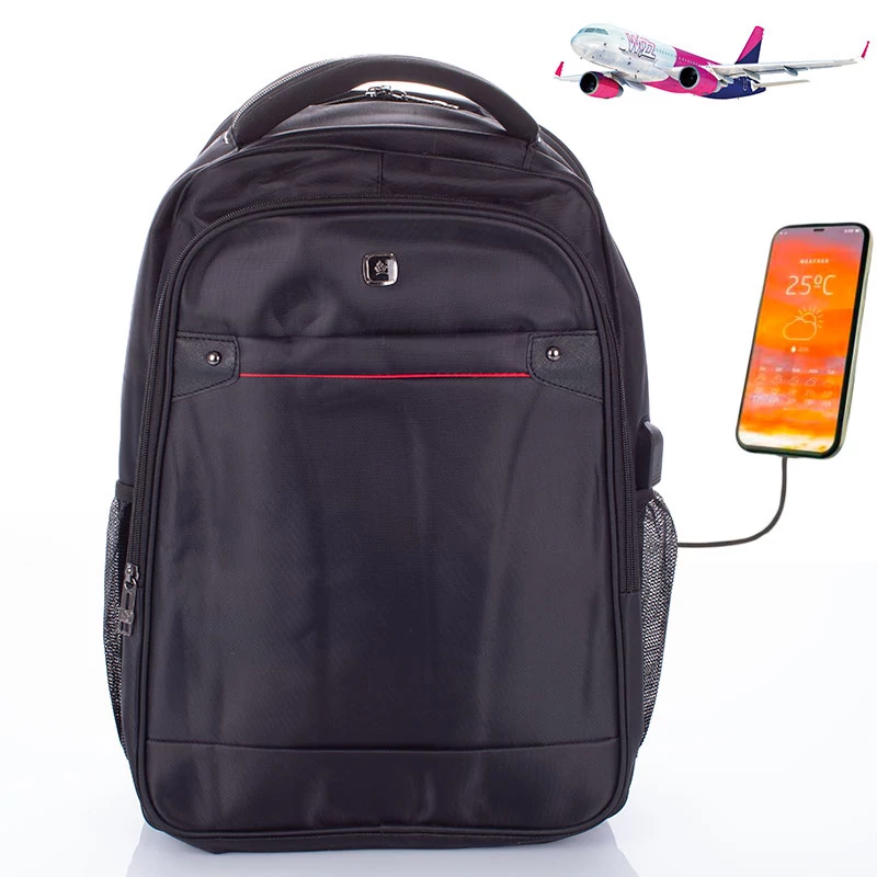 Wizz Air méretű laptophátizsák, mely rendkívül praktikus utazáshoz, iskolába vagy munkába járáshoz is! A sok oldalú hátizsák strapabíró, erős vászon anyagból készült, így jól bírja a mindennapok által okozott gyűrődést. A hátitáska sok zsebbel rendelkezik, ebből kifolyólag a tárolás és a rendszerezés nagyon egyszerű benne. Található a hátulján egy külön laptopttartó rekesz, így kényelmesen elkülönítve hordhatjuk magunkkal a laptopunkat, és bármikor könnyen elővehetjük azt. A táska különlegessége, hogy külön USB kivezetéssel rendelkezik. Így, ha tölteni szeretnénk a telefonunkat, akkor csak helyezzünk egy powerbanket a táskába, a kábelt vezessük ki a nyíláson keresztül, a telefonunkat pedig ugyanúgy használni tudjuk. Rendkívül praktikus lehet ez a megoldás városnézés esetén, vagy kiránduláskor. Repülős utazásra is magunkkal vihetjük az utazó hátizsákot, mivel 40 x 30 x 20 cm mérete miatt, tökéletesen belefér a Wizz Air ingyenes kézipoggyász szabályzatába. Az utazótáska összesen két színben kapható, feketében és szürkében. Ez a laptoptartós hátizsák egy igazi multifunkcionális darab, hiszen használhatjuk a mindennapokban, de ha utazásra kerülne a sor, akkor ott is remekül helyt áll. Ára pedig verhetetlen! A táska tulajdonságai és minősége felülmúl minden árban hozzá hasonló darabot!