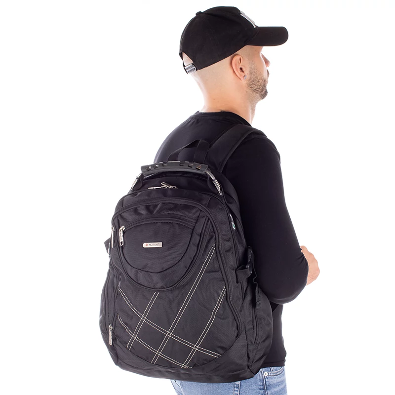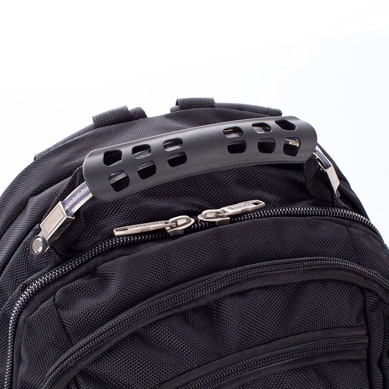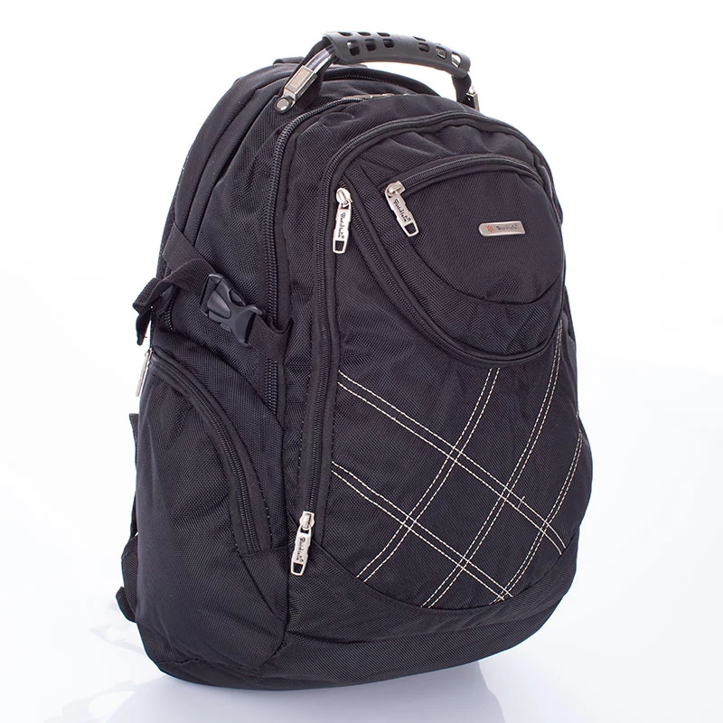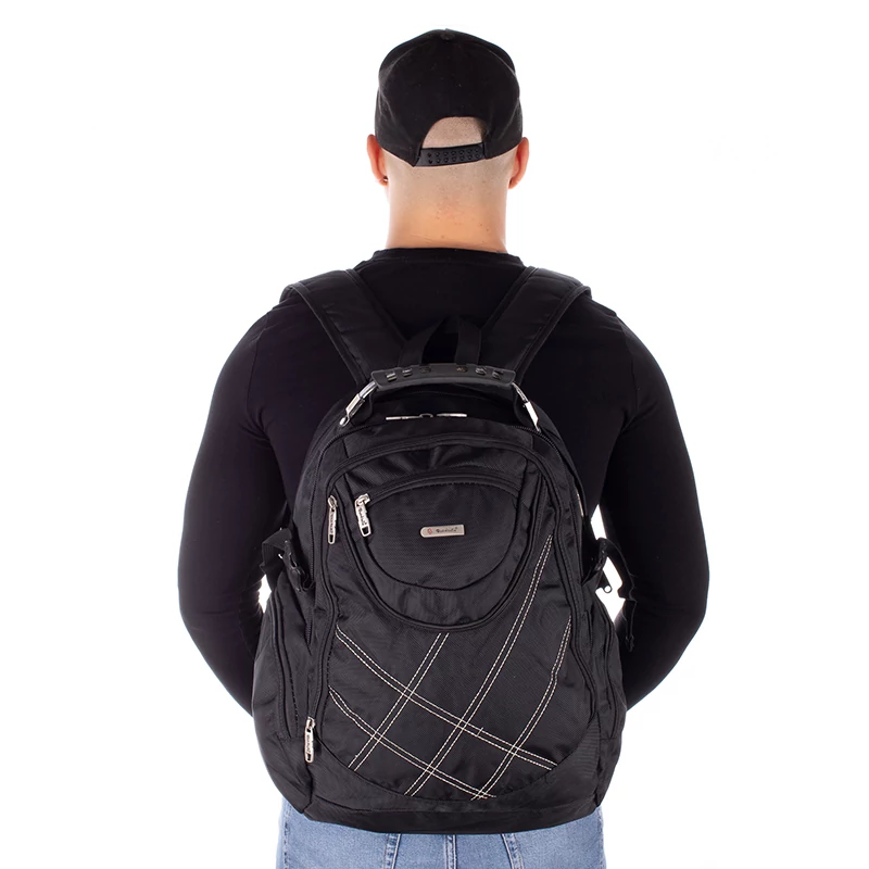 Párnázott vállpánt és hátrész a kényelmes viseletért.  4 cipzáras tárolórész. Az első rekeszben különböző méretű belső zseb található, akár irattartó, íróeszköz, telefon, pénztárca, kulcsok tárolására alkalmas.  Fekete színű.