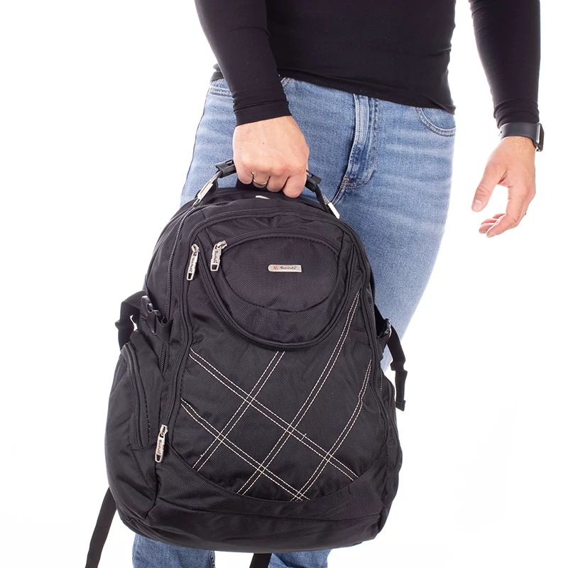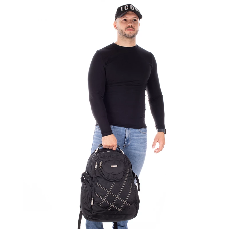 Ez a fekete színű ultraerős fogóval rendelkező hátizsák erős vászon anyagból, praktikus tárolórészekkel, sok zsebbel.