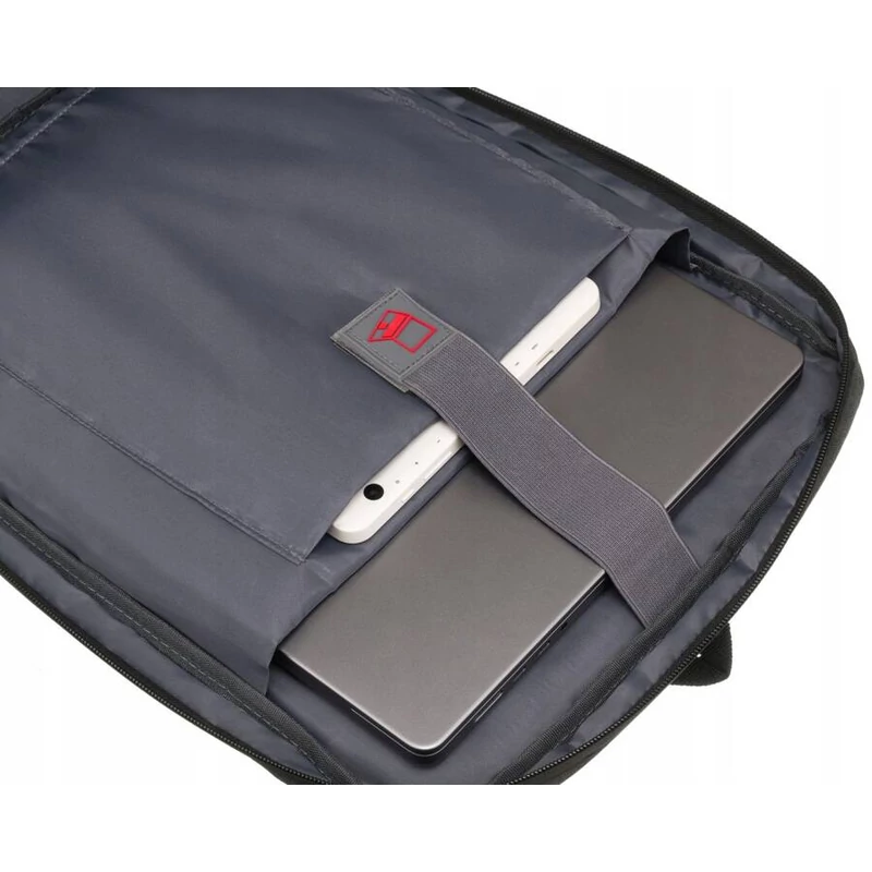 A hátizsák egy dedikált, biztonságos zsebbel van felszerelve egy 29,5x28 cm-es laptop számára . A laptop zseb mellett ugyanabban a rekeszben található egy kisebb zseb, amit például tabletnek is használhatunk. Mindkét zseb egy tépőzárral záródik.
