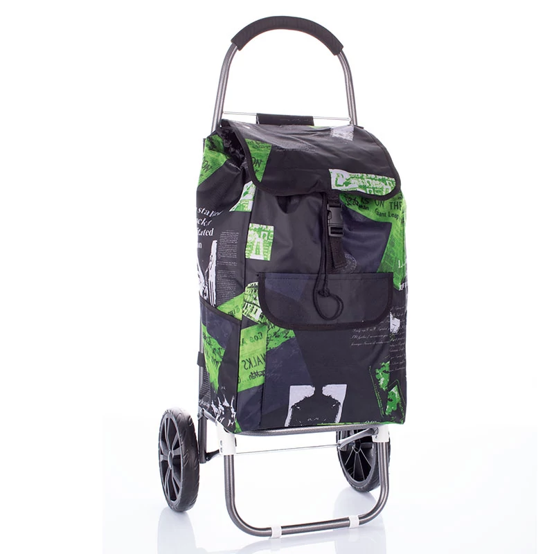 Sokzsebes Gurulós bevásárlókocsi fekete-zöld színben