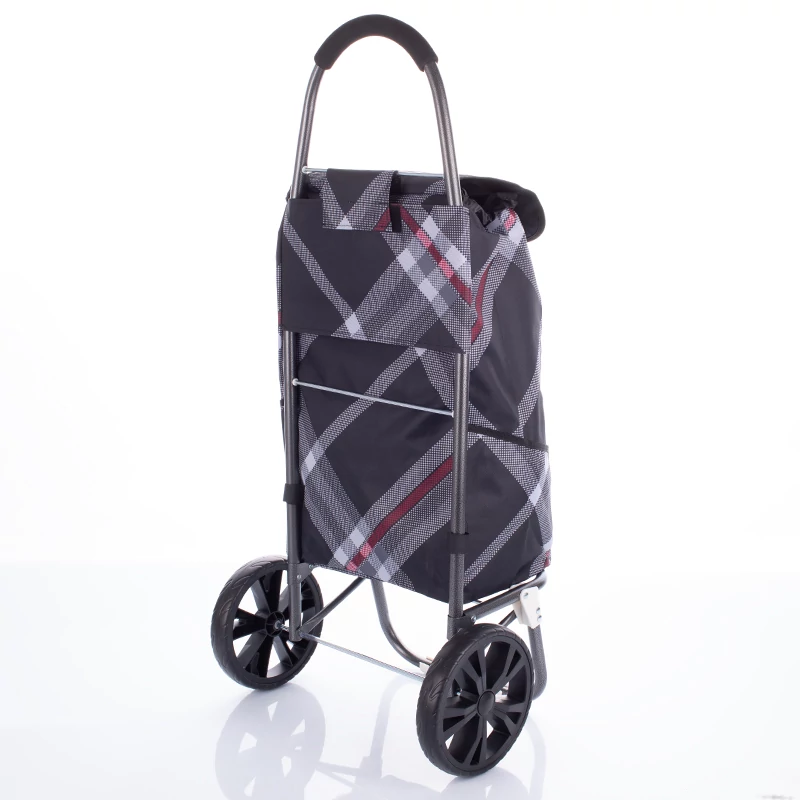 Kerekes bevásárlótáska. A bevásárlótáska könnyedén szétszedhető, a táskarész a kuliról lehúzható, kimosható. Belseje egylégteres, a táska szája összehúzható.
