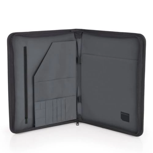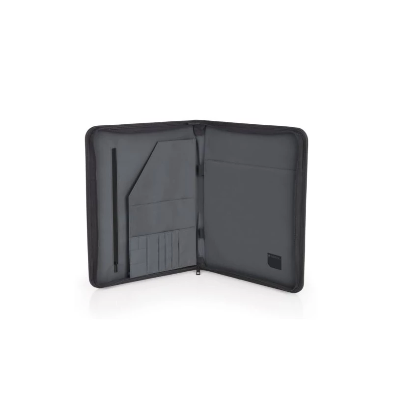 Egy cipzáras főrészből áll. Találunk benne névjegy- és tolltartót, két fakkot iratok tárolására, valamint egy közepes cipzáras és egy nagyméretű nyitott zsebet is.