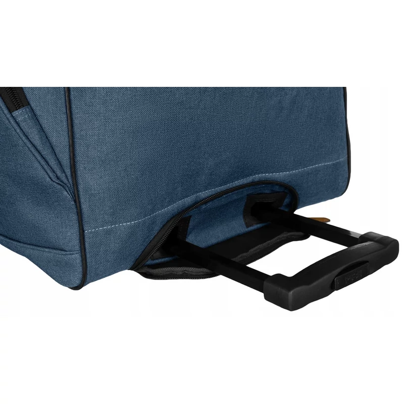 A táska oldalán, a cipzáros lebeny alatt egy masszív, teleszkópos kétkaros fogantyú található, amelyet bármikor könnyedén kihúzhatsz. Így hatékonyan és kényelmesen mozoghat a táskával. A fogantyú maximum 30 cm magasságig nyúlik ki .