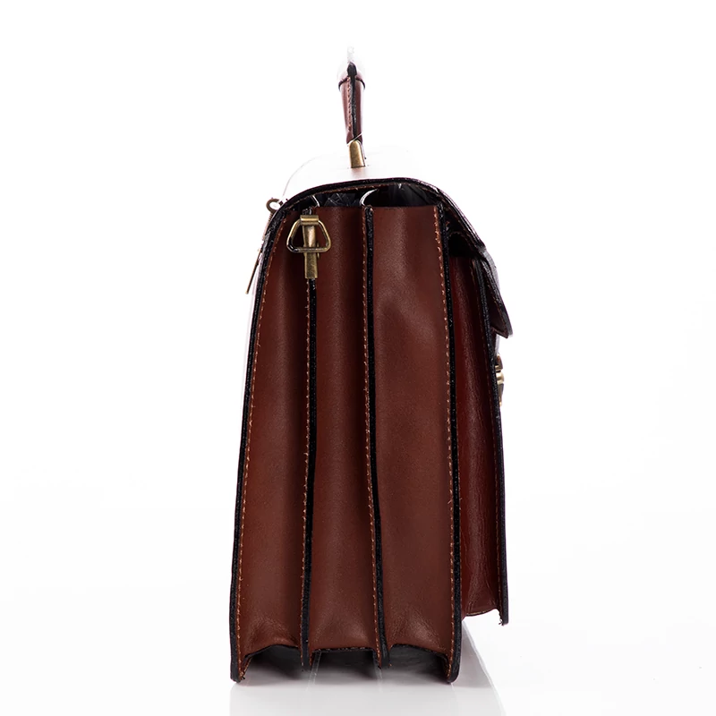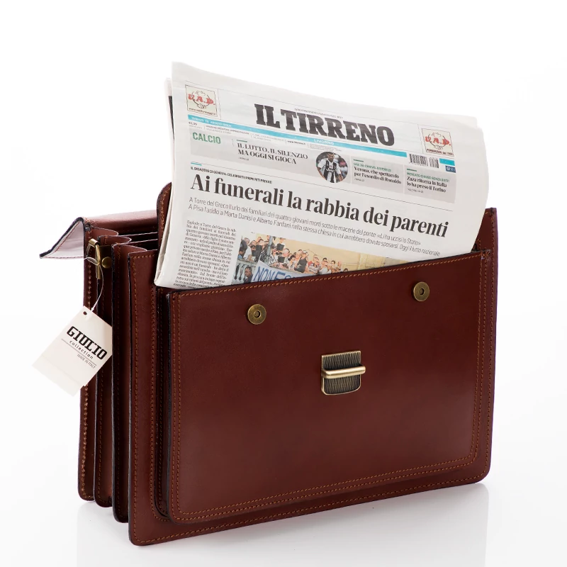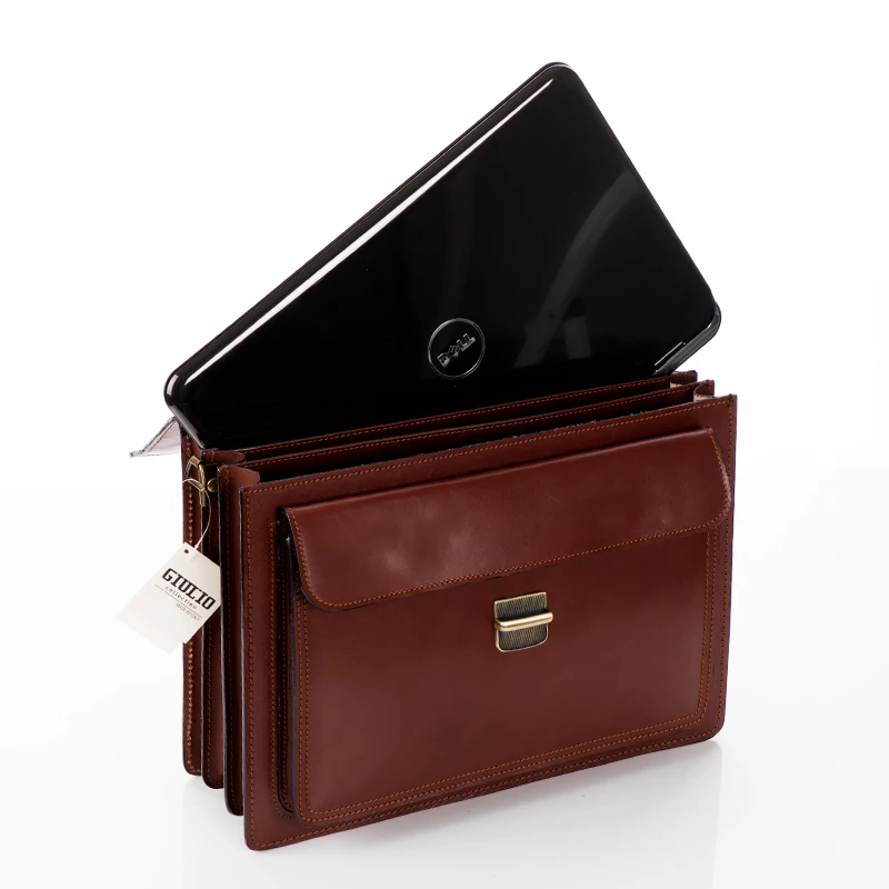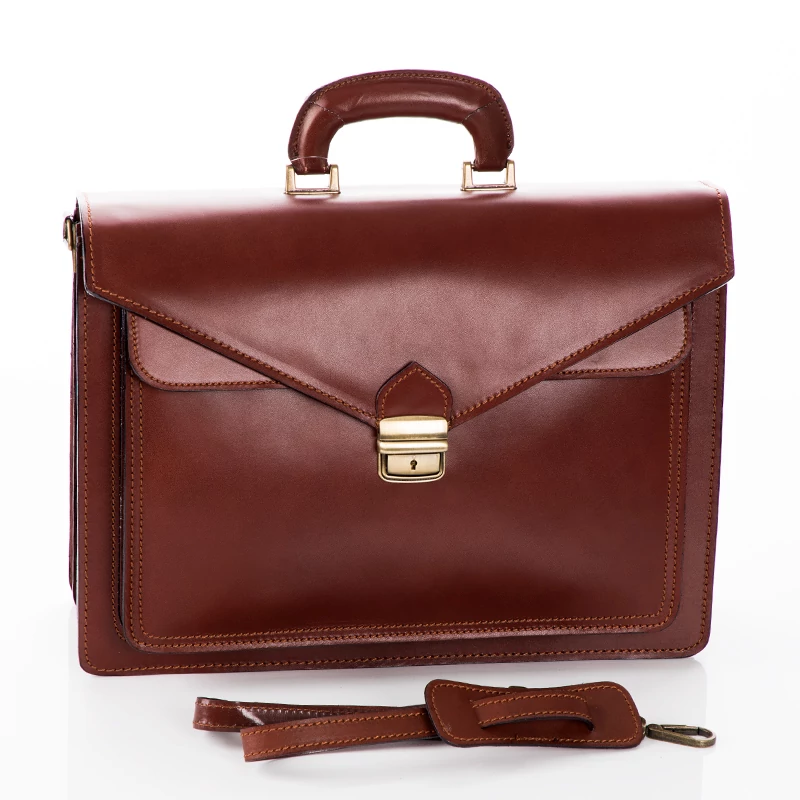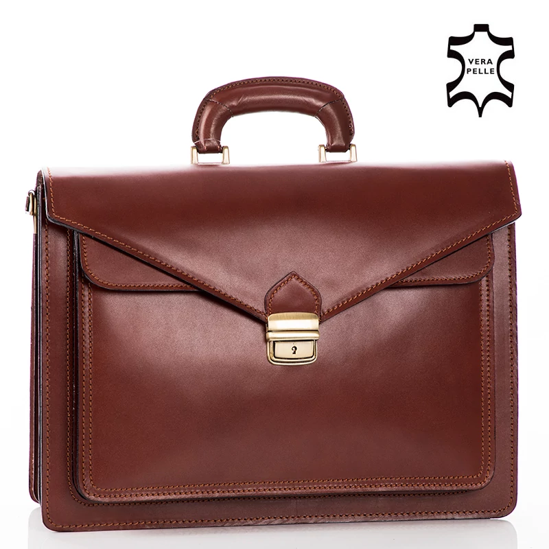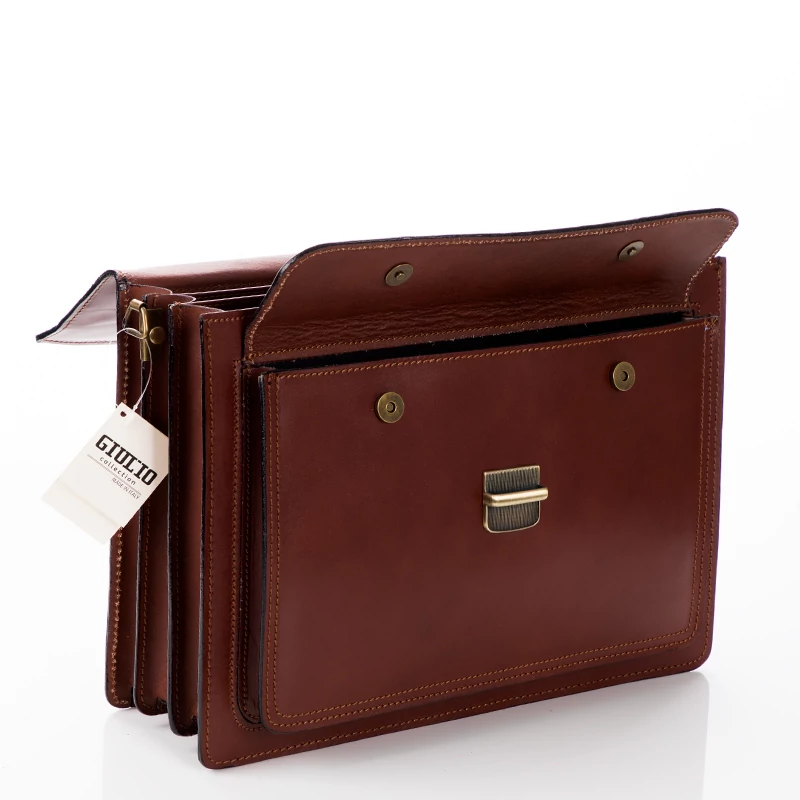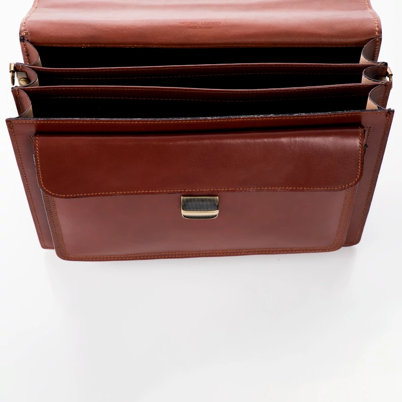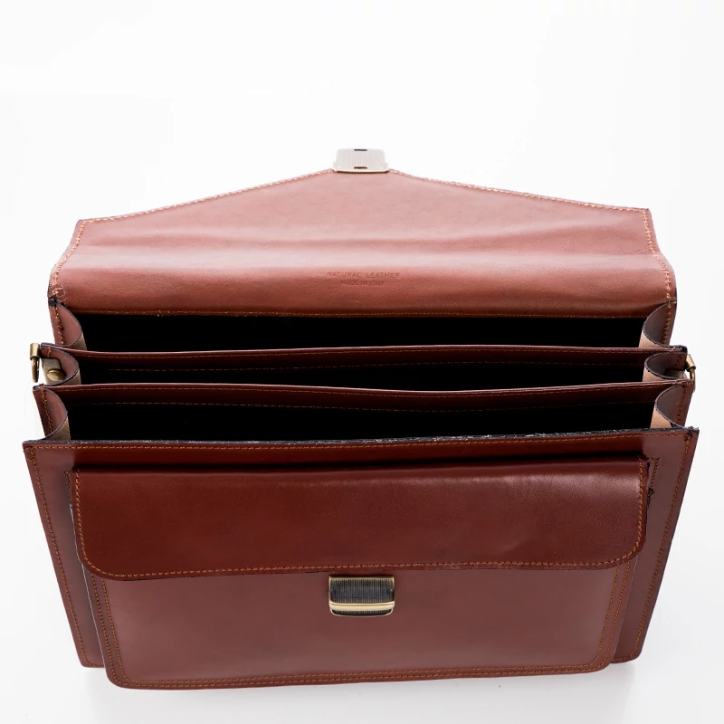 Valódi bőr aktatáska, 3 rekeszes, ezeken kívül még plusz két nagyobb rekesz ( egy patentos elől és egy cipzáras a hátfalon). Hosszú pánt is tartozik a táskához. Elegáns megjelenést tükröz viselőjének. Igényesen kivitelezett, Olaszországban készült aktatáska. Ajándéknak is tökéletes.