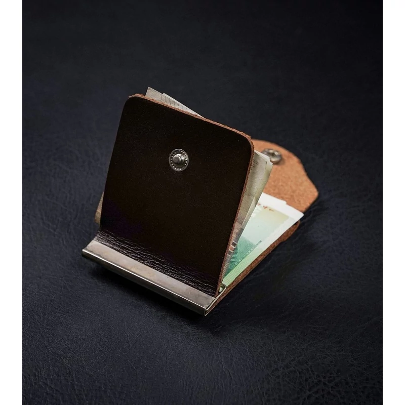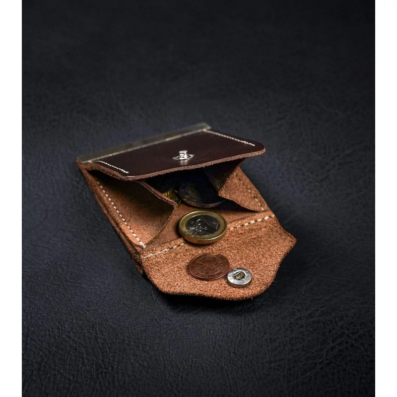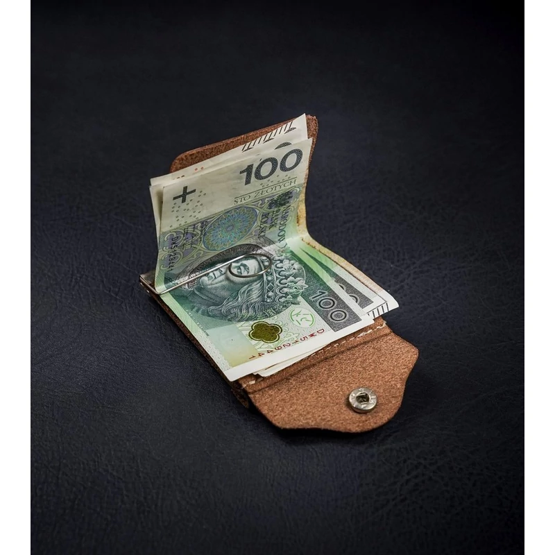 Az elején el van helyezve egy aprópénztartó zseb. Belsejében, a pénztárca gerincén el van helyezve egy rugós leszorító, ami tartja a papírpénzt.