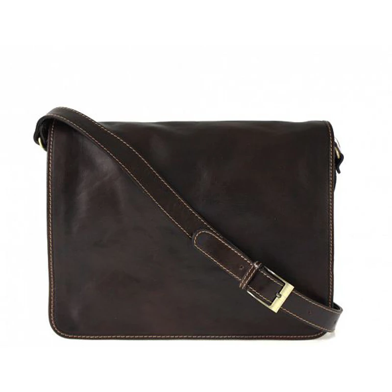 Kívül-belül 100% valódi bőrből készült, nagyméretű férfi válltáska, oldaltáska. Belseje osztott elrendezésű. Egy nagy cipzáras tároló van benne, ahol A/5-ös méretű iratok is elférnek. 2 tolltartó, névjegykártya tartók és 1 mobiltartó van még belül. Külső részén is van egy nagy cipzáras tárolórész a táska hátfalán. Tárolhatsz benne laptopot is, A/4-es méretű iratokat és minden más személyes dolgot, ami a mindennapokon szükséges hogy nálad legyenek. A ráhajtó két mágnescsattal záródik, biztonságos. A táska vállpántja is masszív, varrva és szegecselve is van. Hosszúsága 135 cm-ig állítható, lyukasztott csatos. Szélessége 3,5 cm.