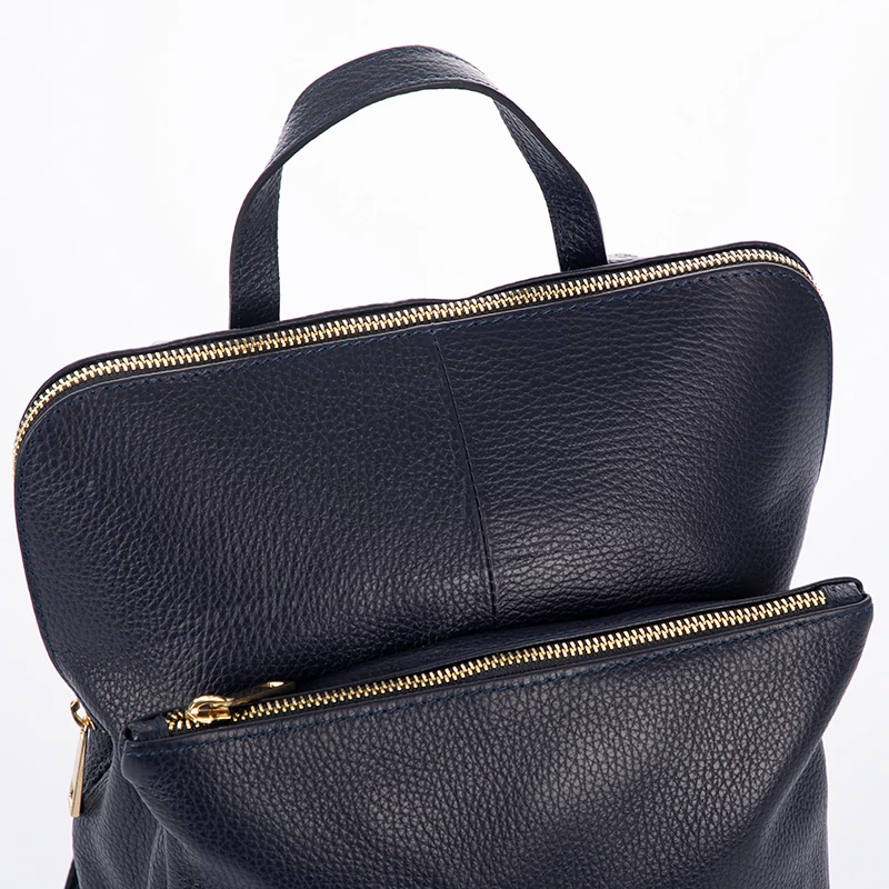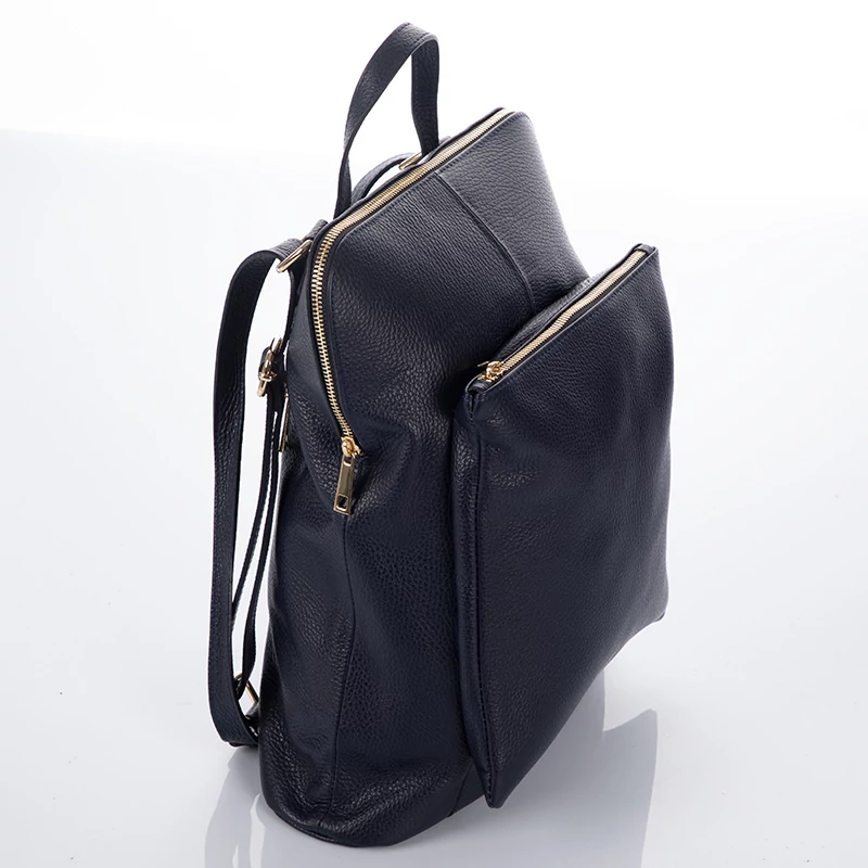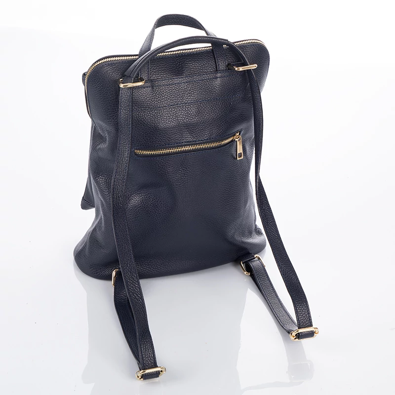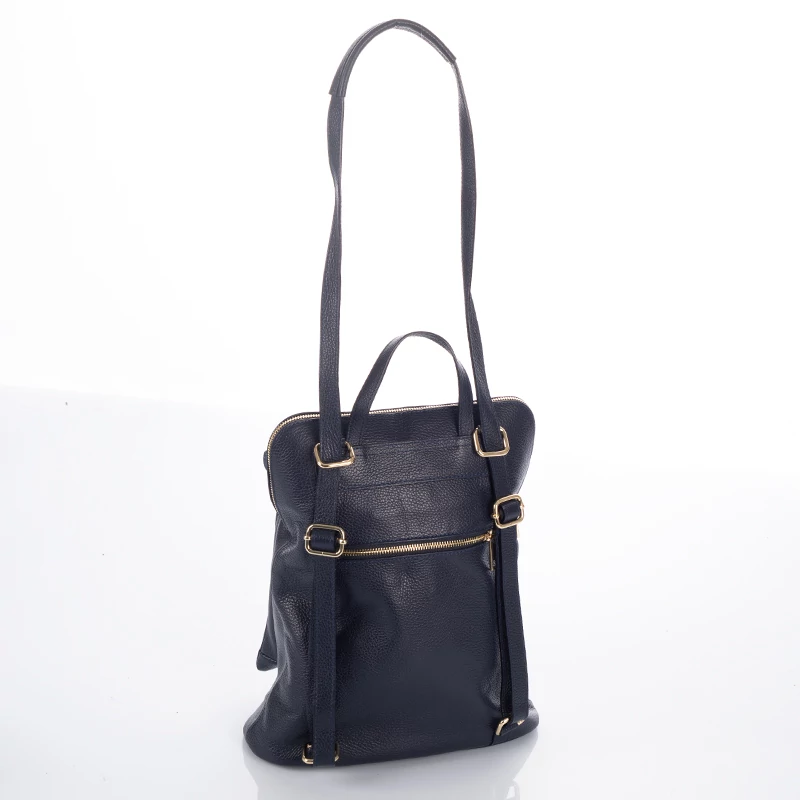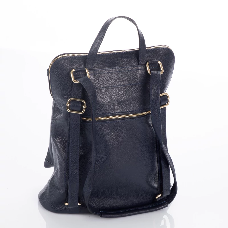 Valódi bőr sötétkék hátizsák, amely minőségből nem szenved hiányt, hiszen magas minőségű olasz bőrből készíttettük. Ha egy strapabíró és mindennapi használatú hátitáskára lenne szükséged, akkor remek választás ez a női táska! A bőr hátizsákban elférnek az A/4-es méretű füzetek és iratok, így iskolába, egyetemre vagy munkába is megfelelő ez a táska. A női háti elején található egy cipzáras rekesz, melyben iPad vagy tablet is elfér, így külön fiókban tárolhatod elektronikus eszközöd. A női olasz táska belsejében pedig, van egy cipzáras és két nyitott kisebb zseb is, amiben kisebb értékeidet tárolhatod elszeparáltan. A bőr háti hátulján van még egy nagyjából a táska felével megegyező méretű cipzáras rész is, ahová érdemes a lakáskulcsunkat vagy telefonunkat rakni. Hiszen ez a zseb biztonságot nyújt az idegen kezek elől, nem mellesleg pedig gyorsan előtudjuk venni a dolgainkat ebből a zsebből, ha éppen erre van szükségünk. Ez a bőr táska nagy belső térrel rendelkezik, így pakolás terén teljesen átlátható. Remek választás lehet külföldre utazáskoris, hiszen mindent magunkkal tudunk vinni benne, ha arra lenne szükségünk. A hátiszák 3 funkciós, így könnyedén készíthetünk belőle oldaltáskát is, hiszen vállpántja átalakítható, emiatt oldaltáskaként is hordhatjuk. Minősége pedig páratlan ennek a női bőr hátitáskának sokáig hűséges tásunk lehet, az magas minőségű olasz bőrnek köszönhetően. Összesen 15 színben vásárolható meg ez az valódi olasz bőrből készült női hátizsák, így mindenki megtalálhatja a hozzá legjobban passzolót.