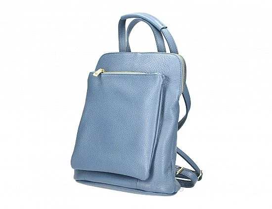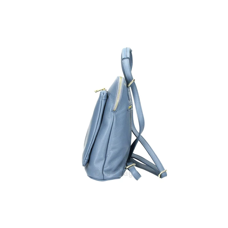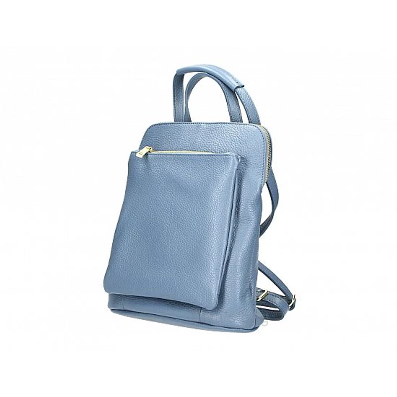 Csinos közepes méretű valódi bőr női hátizsák. 3 funkciós: hordható kézben a kis fülével, hordható keresztül véve vállunkon oldaltáskaként és hordható hátizsákként is. Igényesen, szépen megmunkált, olasz táska. Kívül két cipzáros zsebe is van. Belseje osztott elrendezésű, összesen öt zseb van belül.