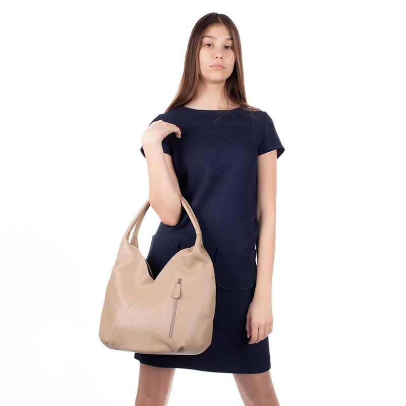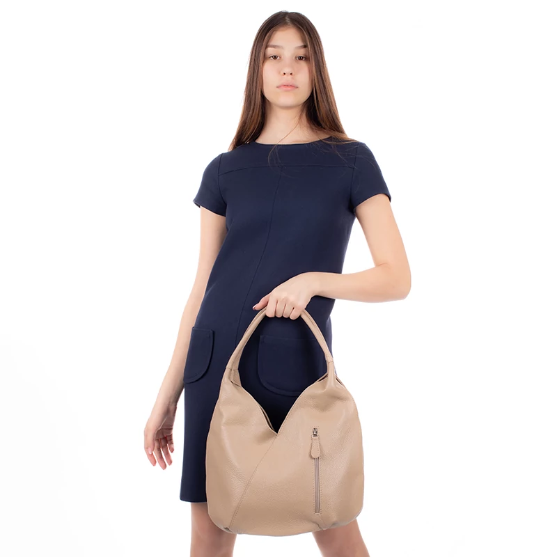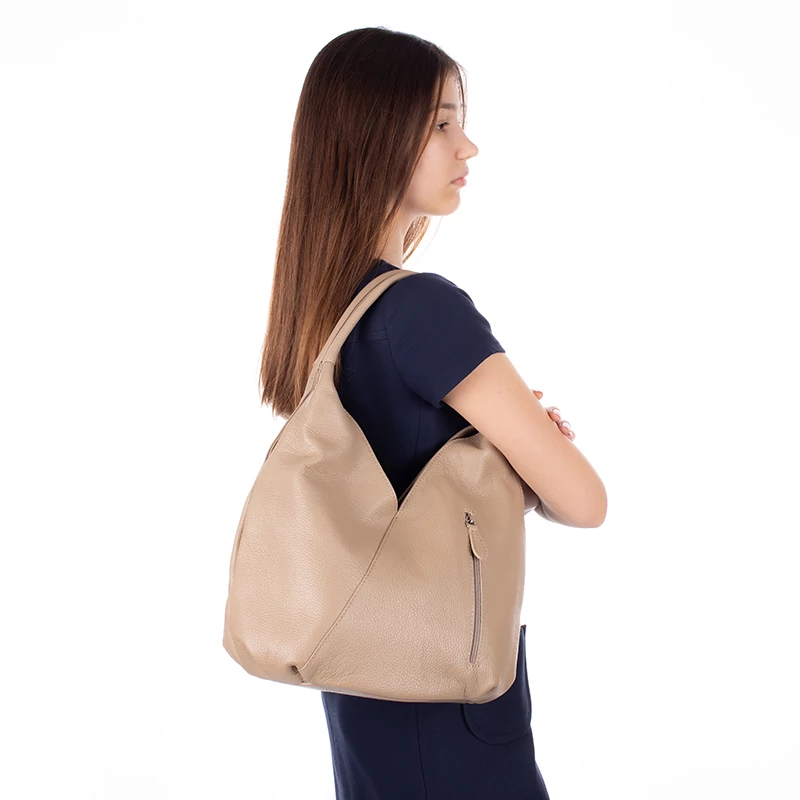 Valódi bőr női válltáska taupe színben S7204 Taupe