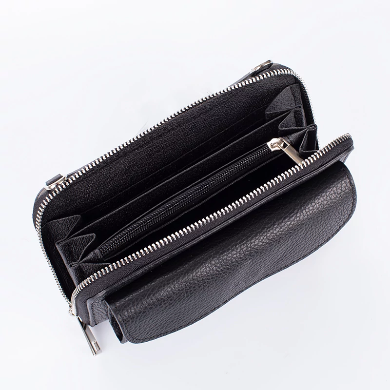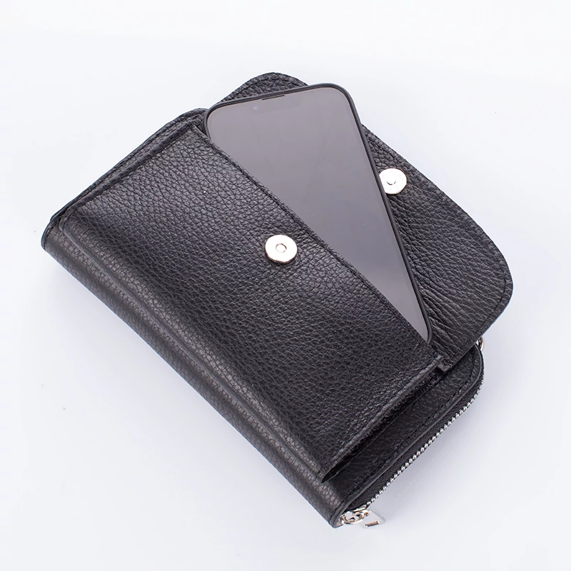 Valódi bőrből készült pénztárca, ami egyben telefontartó is! Ha szereted egy helyen tartani a legfontosabb értékeidet, akkor ezt a tárcát neked találták ki. Ezt a pénztárcát használhatod külön kistáskaként, ha te a kistáskákat kedvelők táborát erősíted, hiszen a pénztárcához jár egy külön állítható pánt. Azonban, ha inkább a nagyobb táskákat szereted akkor sincs gond, mert a pántot könnyen leveheted, és sima pénztárcaként is funkcionálhat, egy apró csavarral, hogy a telefonodat is benne tarthatod! A valódi bőr tárca mérete 12 x 19 cm. A telefontartós rekesz pedig, tökéletesen a mai telefonokra lett tervezve, így könnyedén beleférhet egy átlagos méretű érintőképernyős készülék is. A telefontartós zseb patenttal záródik, így könnyen kinyitható, ám megakadályozza, hogy telefonunk kicsusszanjon a zsebből. A pénztárca része cipzárral nyílik. 3 külön zseb található benne, ahová papírpénzt tudunk tenni és 1 pici cipzáras rekesz az apró pénznek. Kártyatartóból pedig jutott hely bőven, ugyanis 12 kártyát tudunk benne elhelyezni. Mivel valódi bőrből készült, így nagyon kellemes puha tapintású, remek választás mindennapi használatra. Ha pedig kistáskaként szeretnénk használni, akkor imádni fogjuk! Nagyon egyszerű dizájn, ami mindenhez illik, emellett pedig könnyű és praktikus viseletnek örvend. Összesen 5 színben elérhető, és 24 órás kiszállítással!