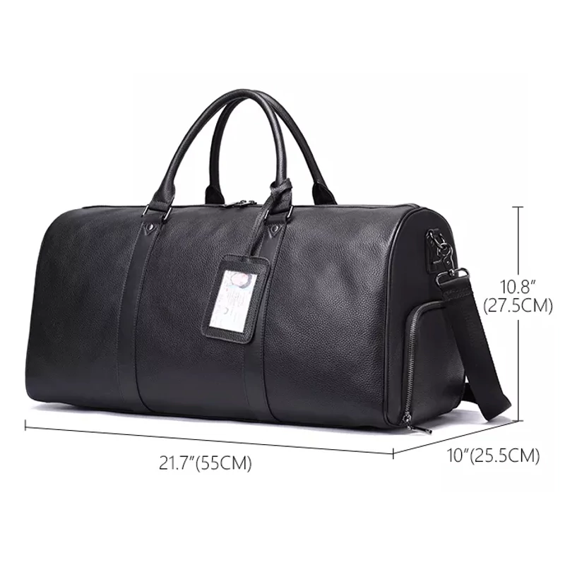 Ez egy olyan utazótáska, amelyről tagadhatatlan, hogy igazi, valódi, eredeti bőrből készült. Puha, mégis erős és masszív, akár örök életű, hű társunk lehet utazásaink során. Első osztályú, profi kidolgozásútáska igazi férfiaknak. Utazz akár egy üzleti útra, akár egyetemre, vagy akár csak az edzőterembe, ezzel a táskával igényes megjelenésed lesz. Nagy pakolótere van, tágas, jól átlátható. Belsejében egy tágascipzáras oldalsó rekesz található. Kis kézi fogója kényelmesmarkolatú. Rácsatolható hosszú pánt is tartozik a táskához, amely szintén kényelmes viseletet biztosít vállon hordáshoz is. Hosszúsága fix 120 cm, szélessége 3 cm. Alján öt fém tappancs van, ezek védik a kopástól és piszkolódástól féltett és szeretett táskánkat. Cipőtartó résszel.
