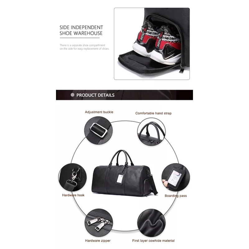 Valódi bőr utazótáska cipőtartós
