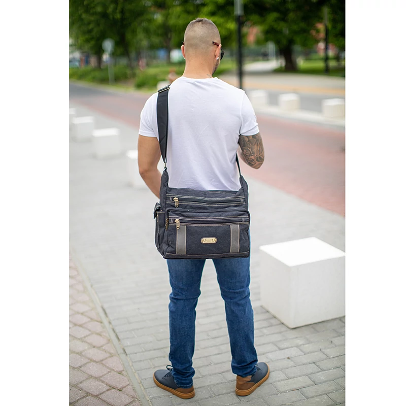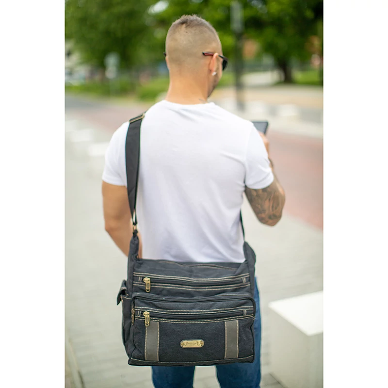 Vászon oldaltáska, keresztpántos táska . Igény szerint állítható hosszúságú vállpántja van, mely kényelmes viseletű. Több praktikus rekesszel, zsebbel is felszerelték a tervezők, hogy mindennek kialakíthassuk a legcélszerűbb tárolórészt. Könnyed és strapabíró vászon anyagból. A/4-es méretű iratok elférnek a táskában.Zipzárral zárható, biztonságos.