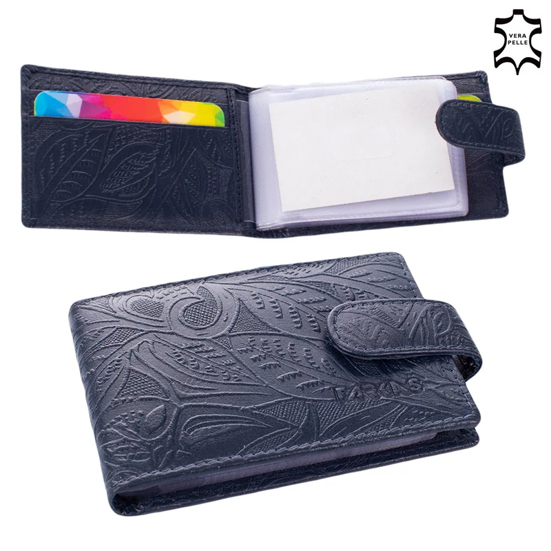 Virágmintás női bőr kártyatartó kék színben 128-blue