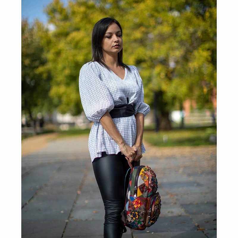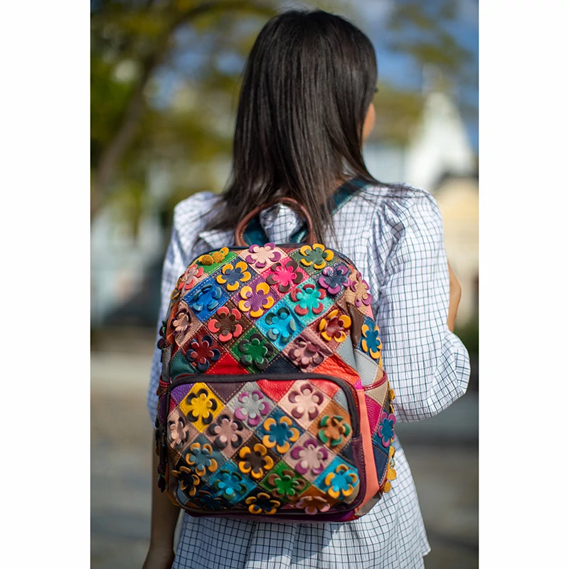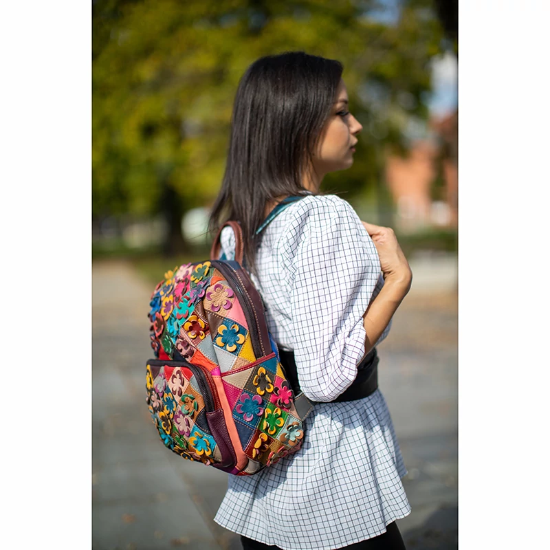 Virágmintás Valódi bőr női hátizsák Patchwork mintával