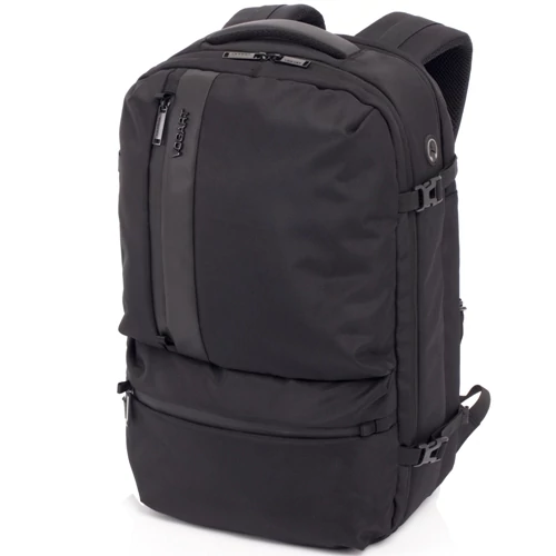 A Vogart Clyde laptopos kabinhátizsák ideális kézipoggyász. Kézben, és szivacsos, állítható vállpántjainak, valamint szintén szivacsos hátrészének köszönhetően háton kényelmesen hordható. A hátizsák kabintáskaként is funkcionál, tekintve hogy vállpántjai elrejthetőek. Laptop készülékének (17") is talál biztonságos (szivacsos) tárhelyet a hátizsák hátsó részében. A hátizsák elejét további két extra zseb gazdagítja, mely megkönnyíti a fontosabb iratok gyors elérését. Speciális méretének köszönhetően a legtöbb légitársaság fedélzetére felvihető.