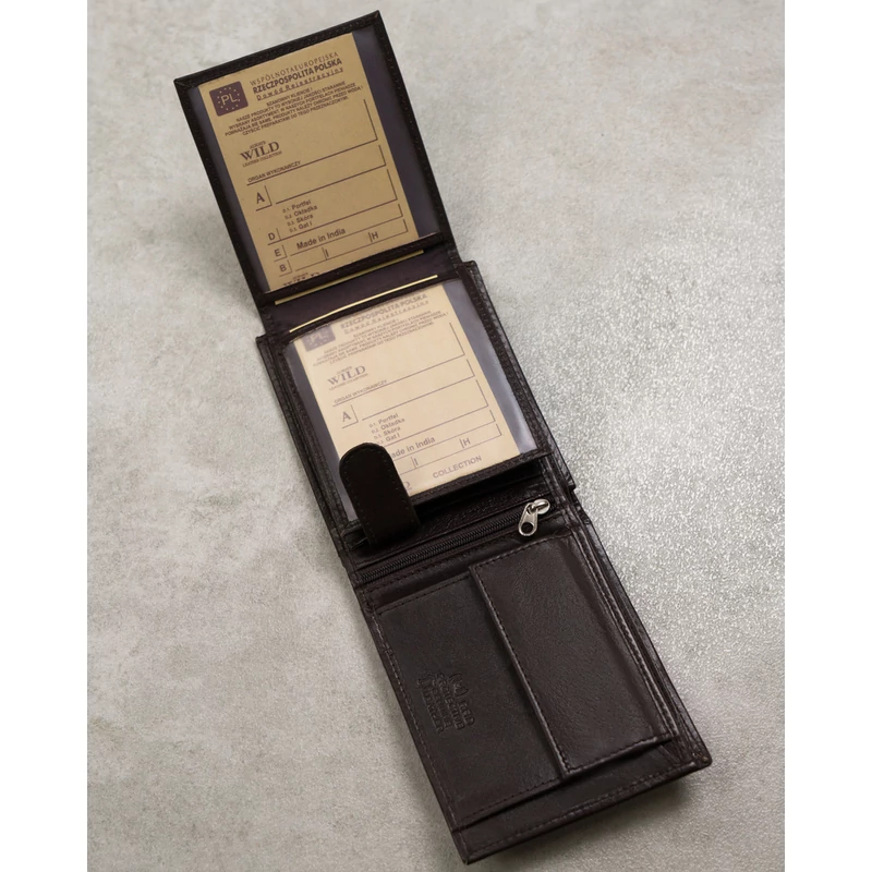 - 2 széles rekesz a pénztárca teljes szélességében varrva;