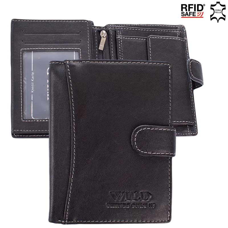Wild Valódi bőr Pénztárca fekete színben RFID védelemmel